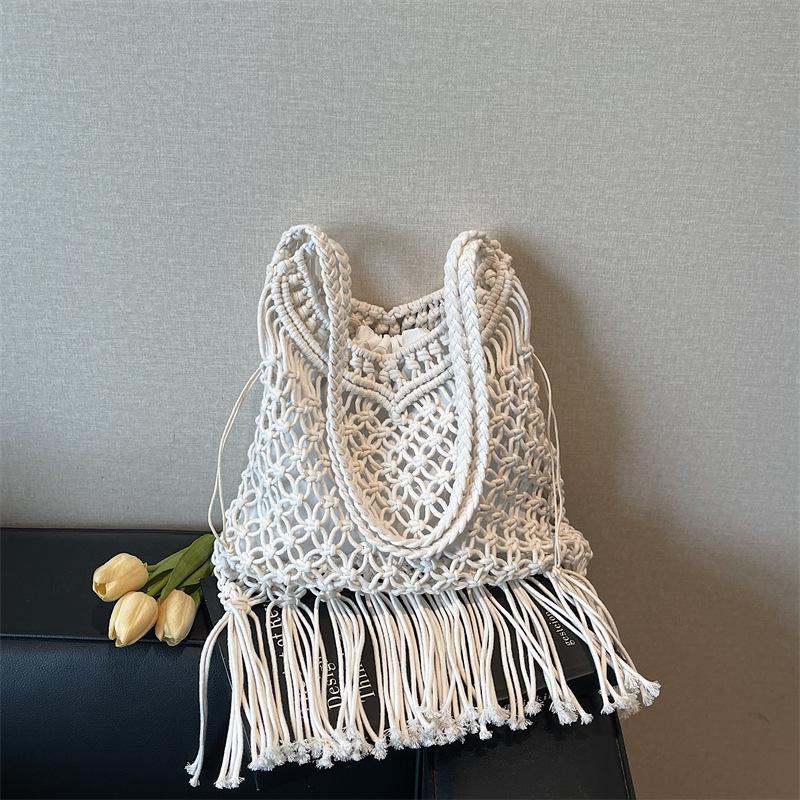 Богемная сумка-тоут с кисточками, ажурная плетеная, женская новая, большой вместимости, для пляжного отдыха, ветрозащитная