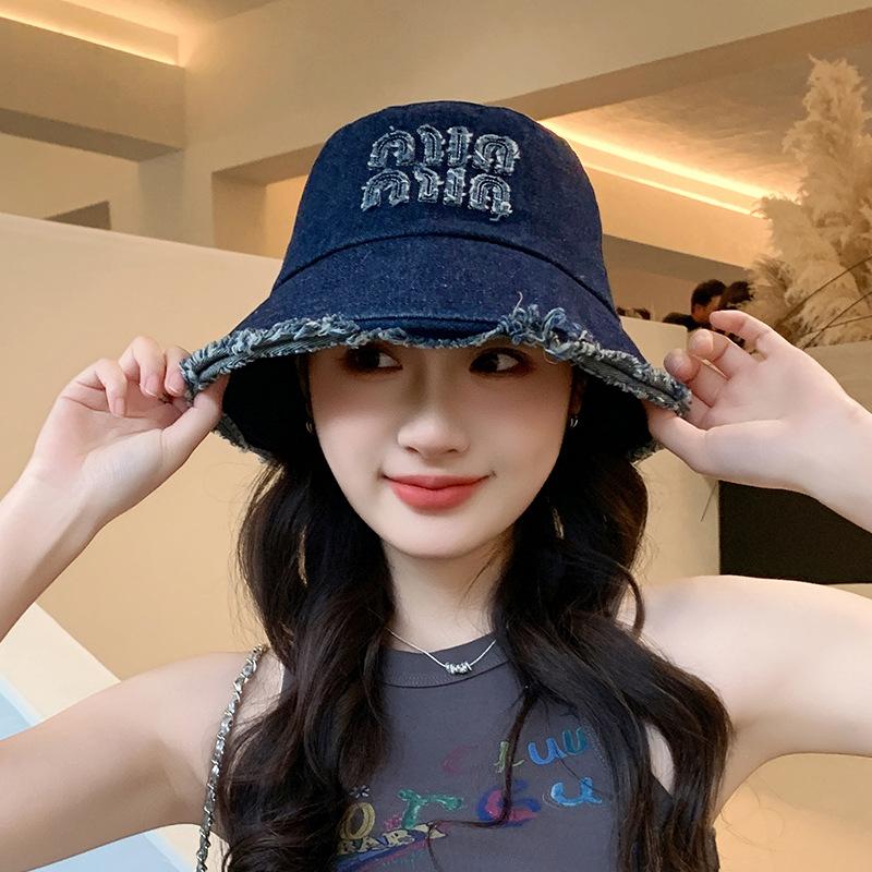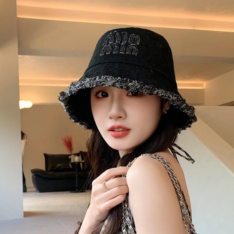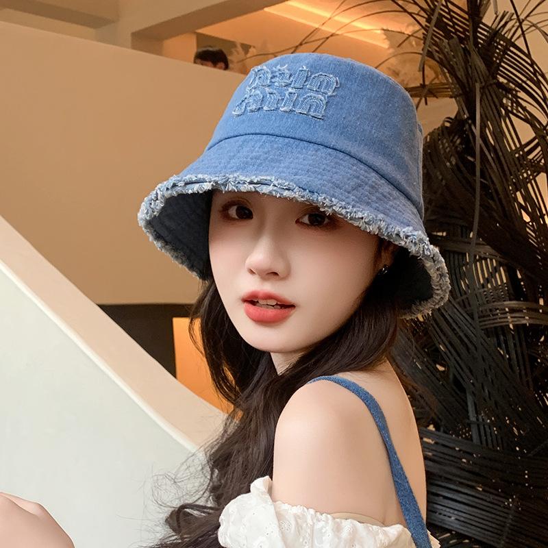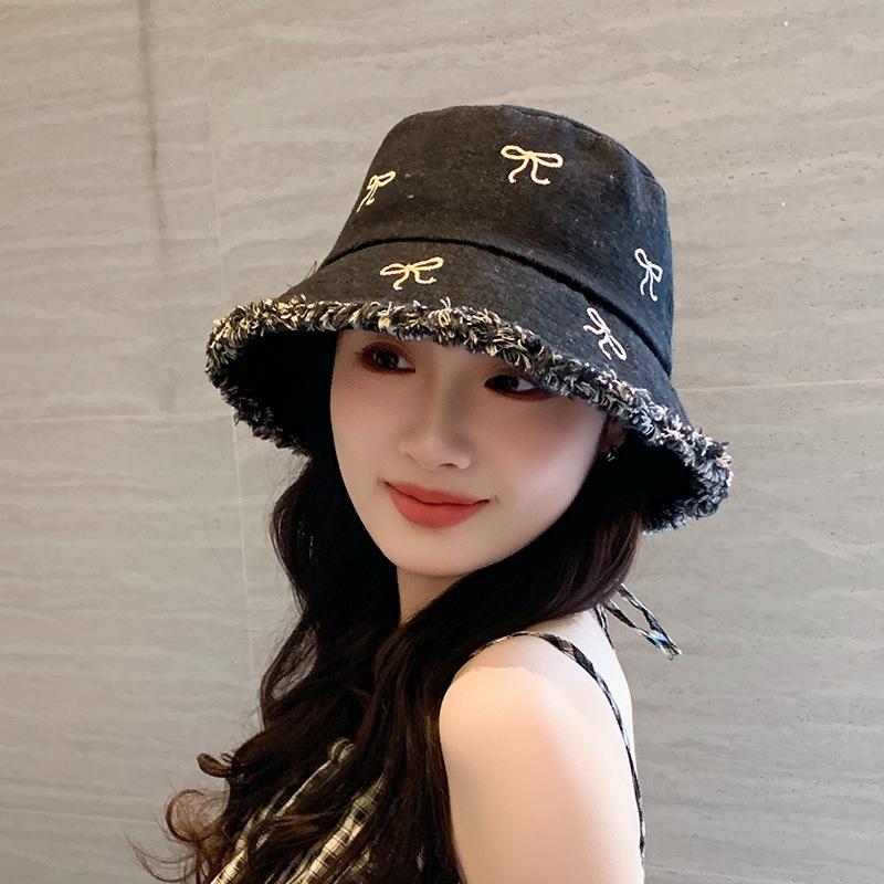 Новая джинсовая панама с необработанным краем, женская универсальная панама-ведро с вышивкой и бантом, маленькая, для лица, темпераментная, от солнца