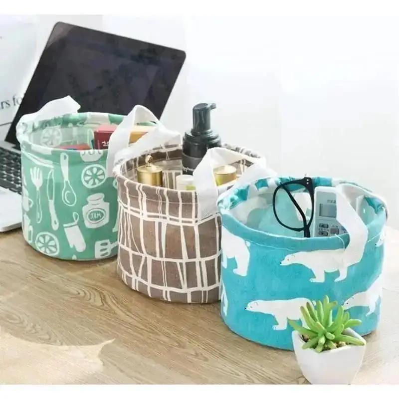 Бытовая Мода Мультяшный Круглый Хлопково-Льняной Настольный Ящик для Хранения Разное Хранение Канцелярские Товары Косметика Корзина Контейнер
