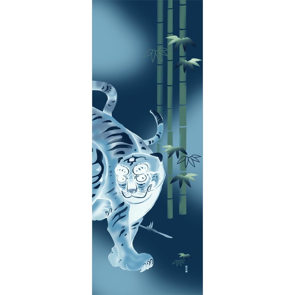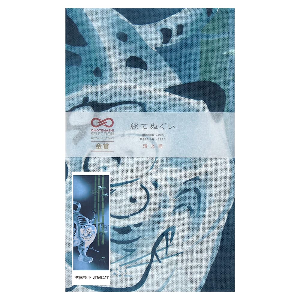 Это японское полотенце тэнугуи, окрашенное с использованием «нассен» — традиционной техники трафаретного окрашивания Йокогамы.