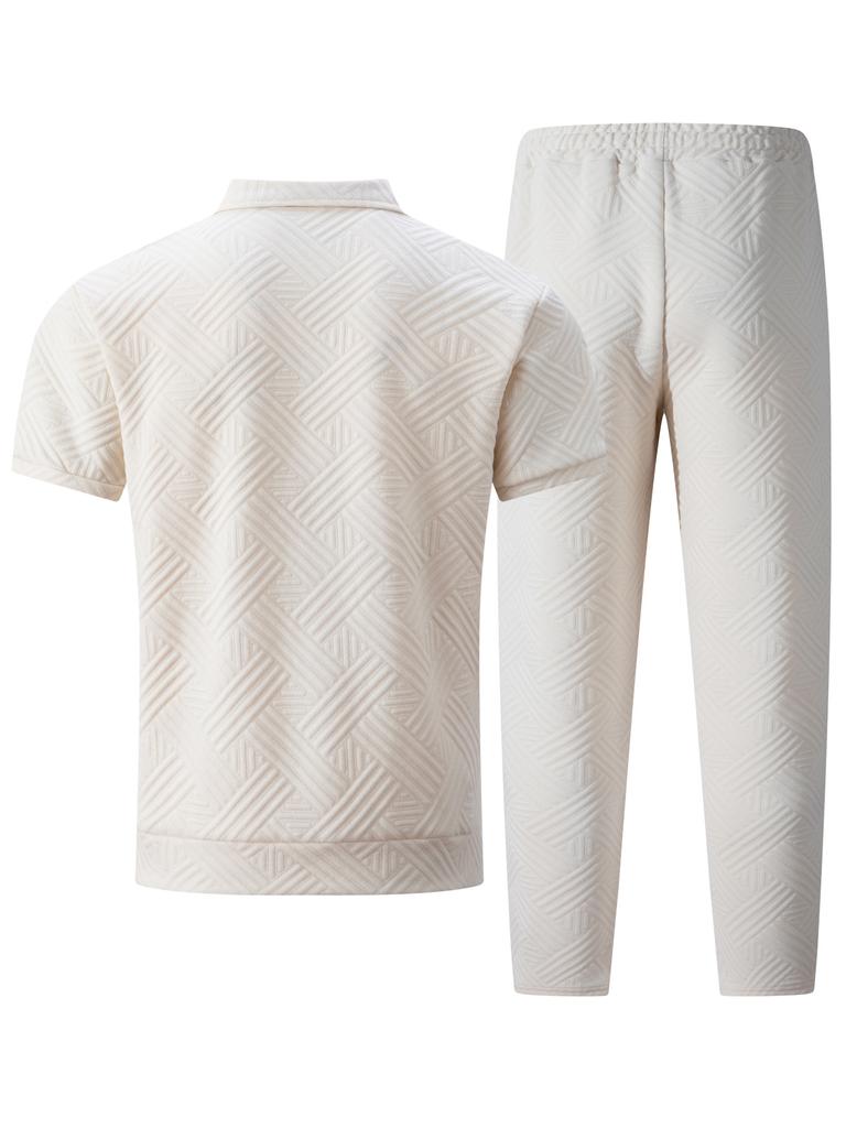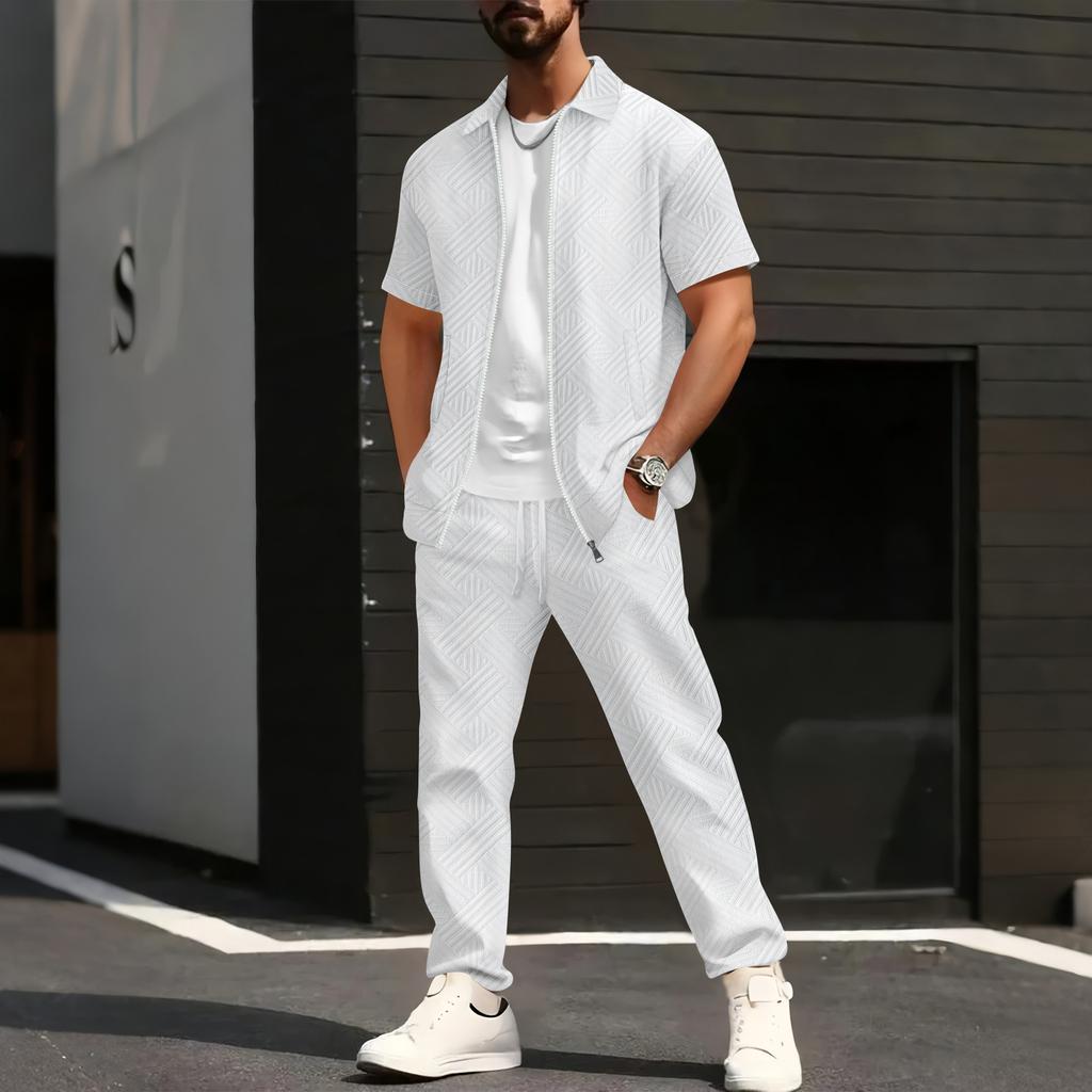 Мужской комплект с геометрическим принтом, куртка с коротким рукавом и брюки, с белой футболкой, повседневный уличный наряд