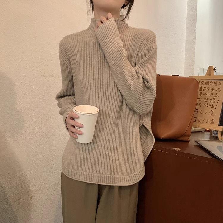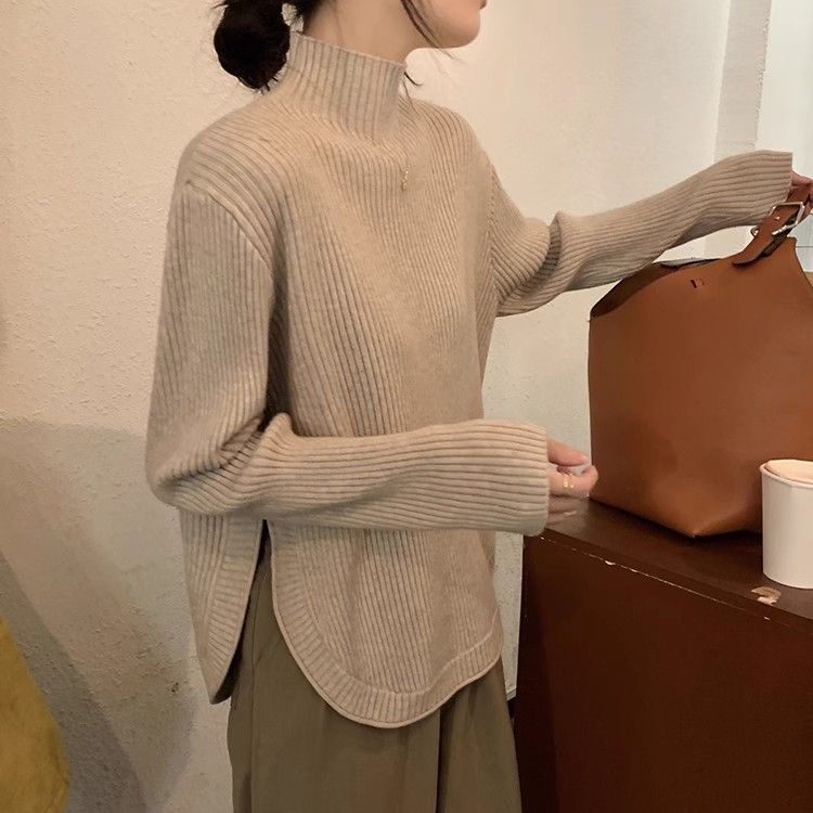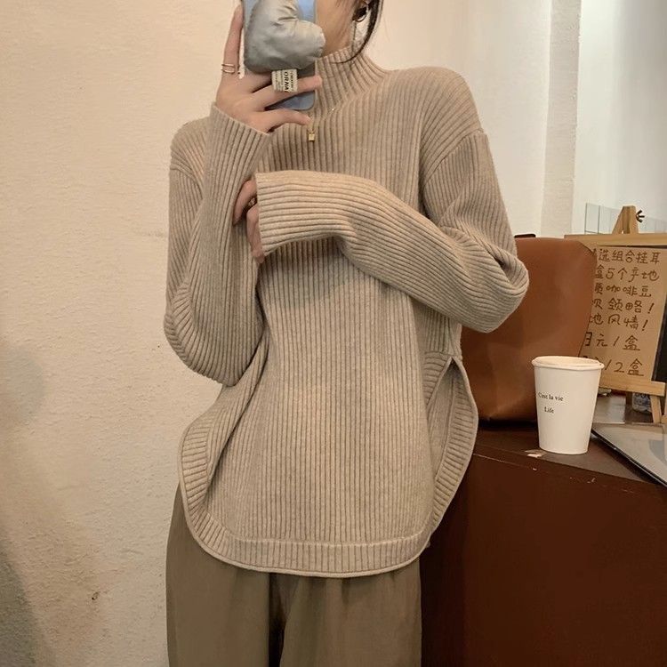 Женский вязаный топ с разрезами и высоким воротником, весенний, модный, свободного кроя, с длинными рукавами, верхняя одежда