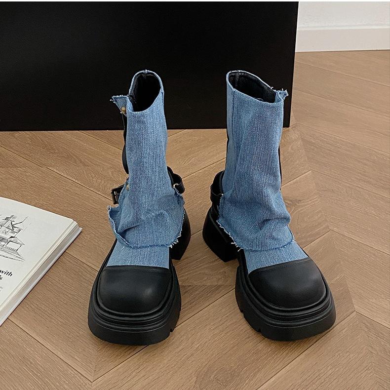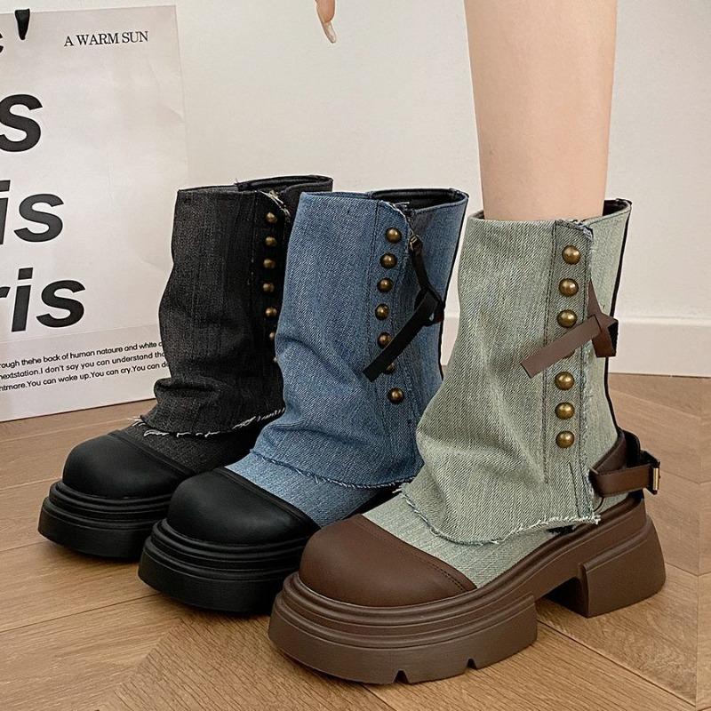 Женские сапоги 2025 Новые сапоги до середины икры для женщин Модные сапоги на платформе Дышащие парусиновые ковбойские сапоги для женщин Мотоциклетные боты