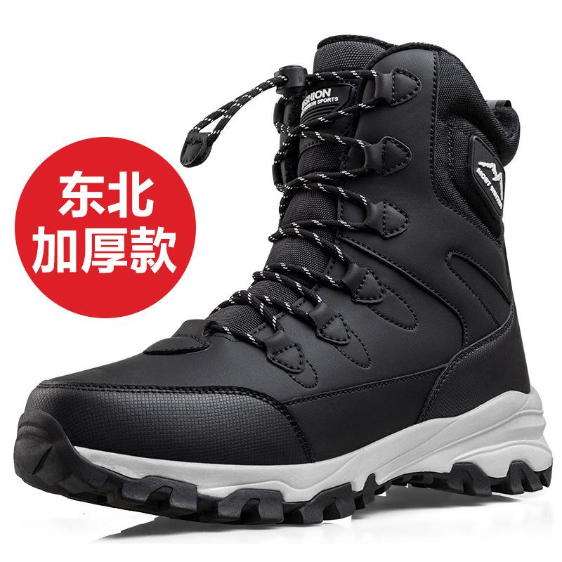 Зимние мужские ботинки с высоким верхом, парные хлопковые ботинки, теплые плюшевые ботинки для снега, уличные нескользящие походные ботинки для мужчин, водонепроницаемые ботинки