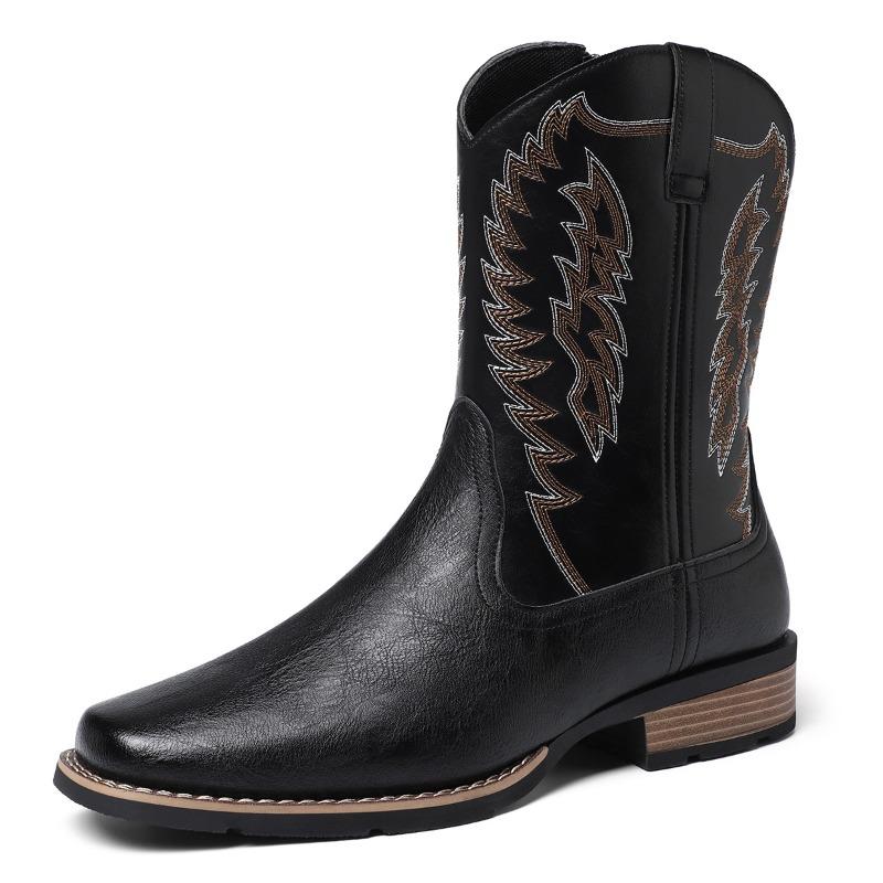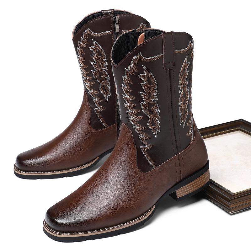 Мужские ковбойские сапоги Модные сапоги до середины икры Ковбойские сапоги Ретро Ручная вышивка Высокие сапоги Мужские Повседневные Кожаные сапоги Рыцарские Ботас