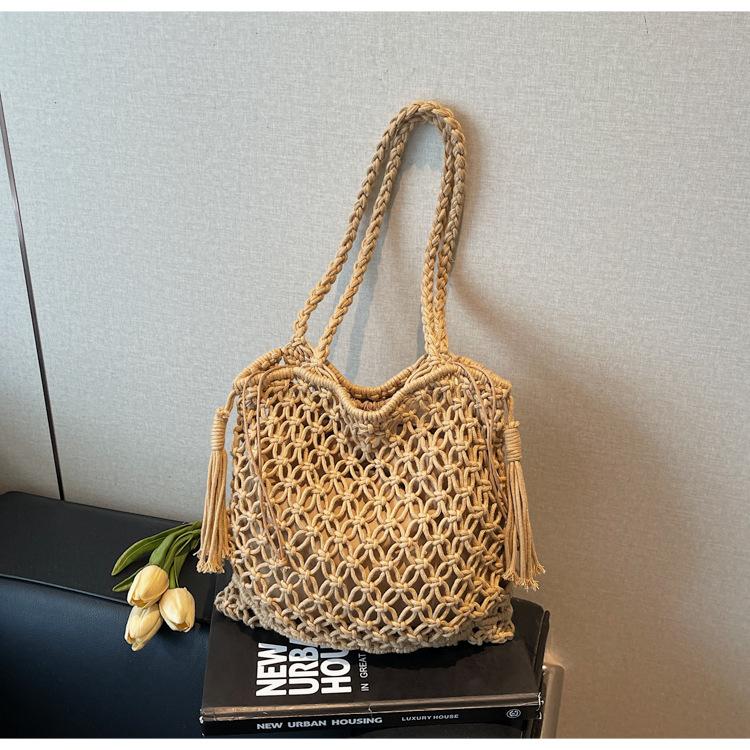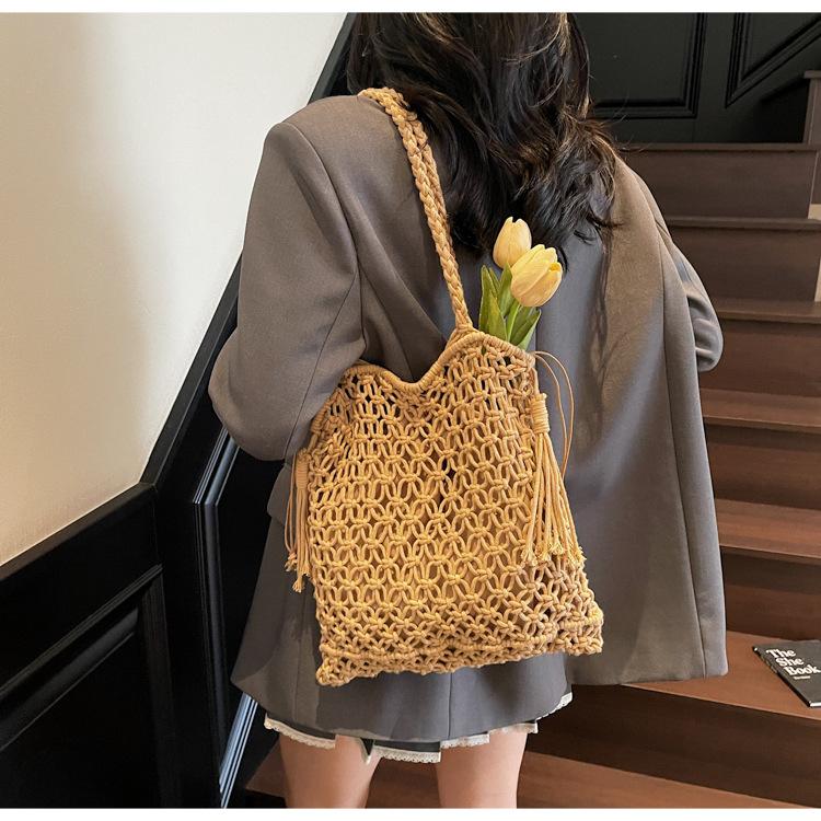 Новая ретро плетеная сумка с кисточкой, сумка-тоут, карман-сетка для рыбалки, летняя, для пляжа, ажурная женская сумка