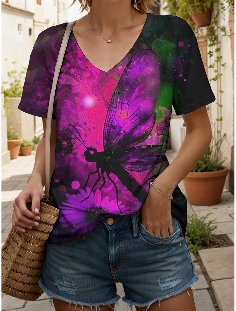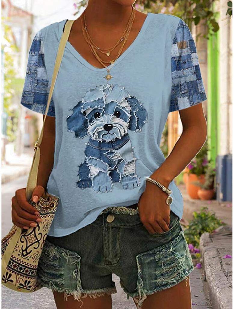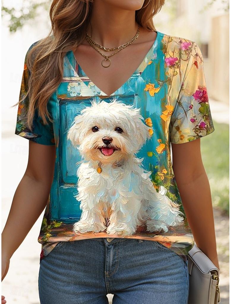 Женская футболка с графическим принтом животного, винтажная, стильная, классическая, с коротким рукавом, V-образным вырезом, обычная, для повседневной носки, с принтом, женская одежда, топы для женщин