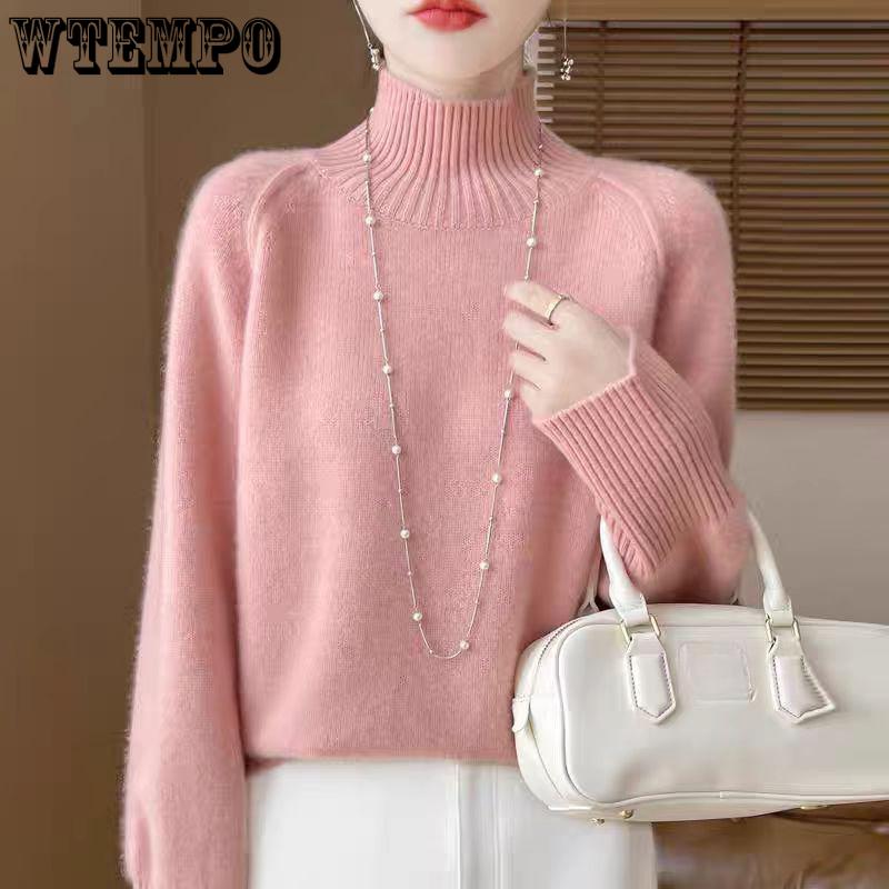 WTEMPO Осенне-зимний свитер с полувысоким воротником, свободный вязаный топ и пуловер