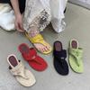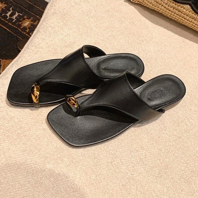 Small gold buckle~ Square head cover toe holiday beach flat bottom toe flip-flops women's sandals outside