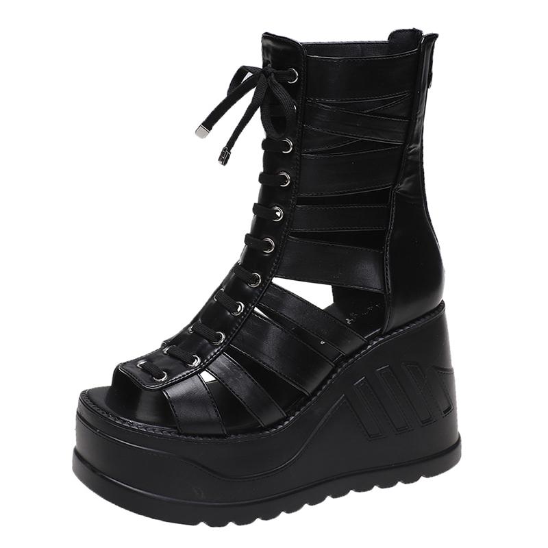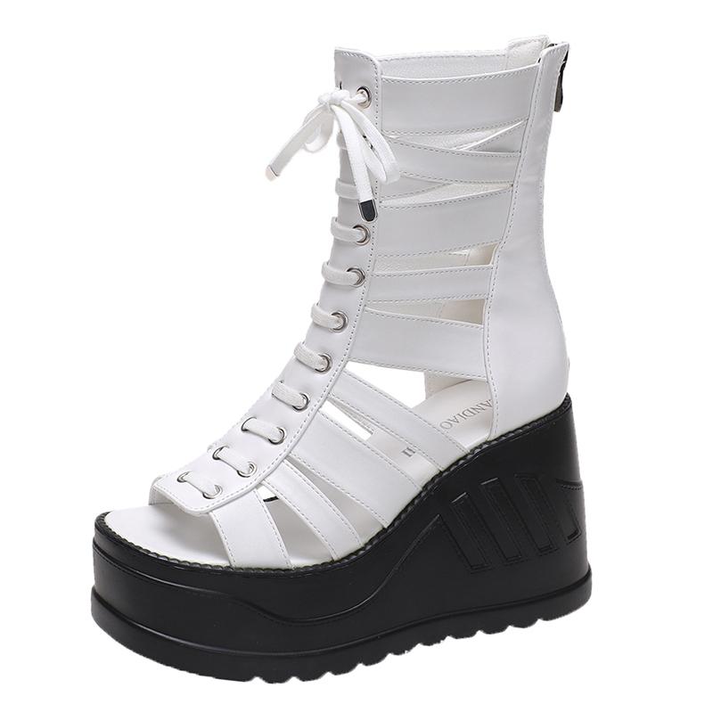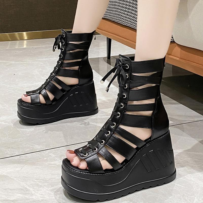 Босоножки на платформе с открытым носком и молнией сзади, больших и маленьких размеров 32-43, женские сандалии-гладиаторы на танкетке на высоком каблуке, элегантные, летние 2025, элегантные