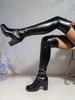 Туфли-лодочки женские на платформе и каблуке-каблуке Эластичные ботильоны Дизайнерские женские туфли до колена Трендовые черные готические туфли в стиле «бок»