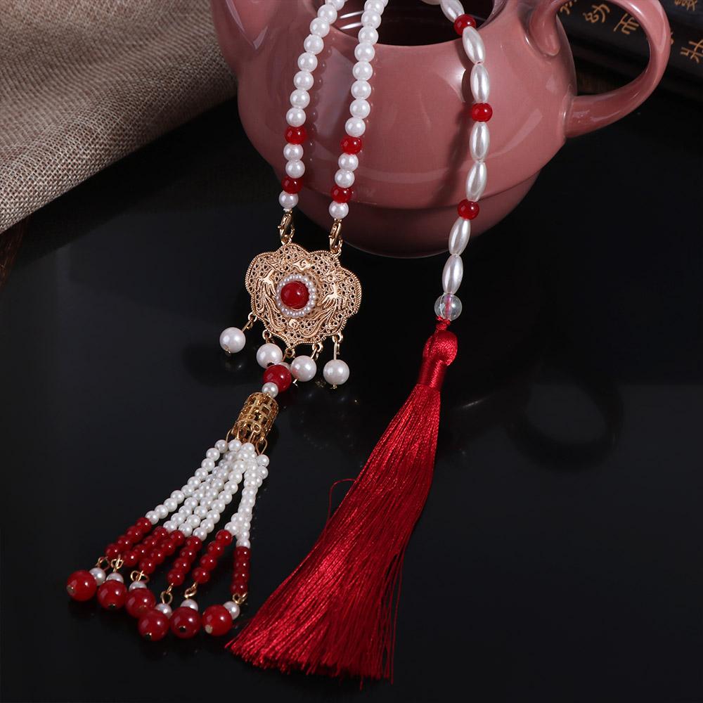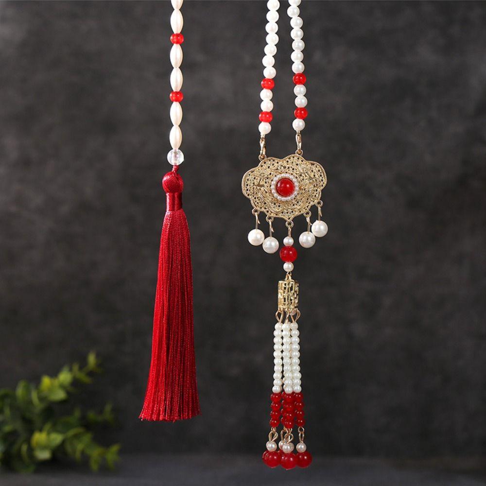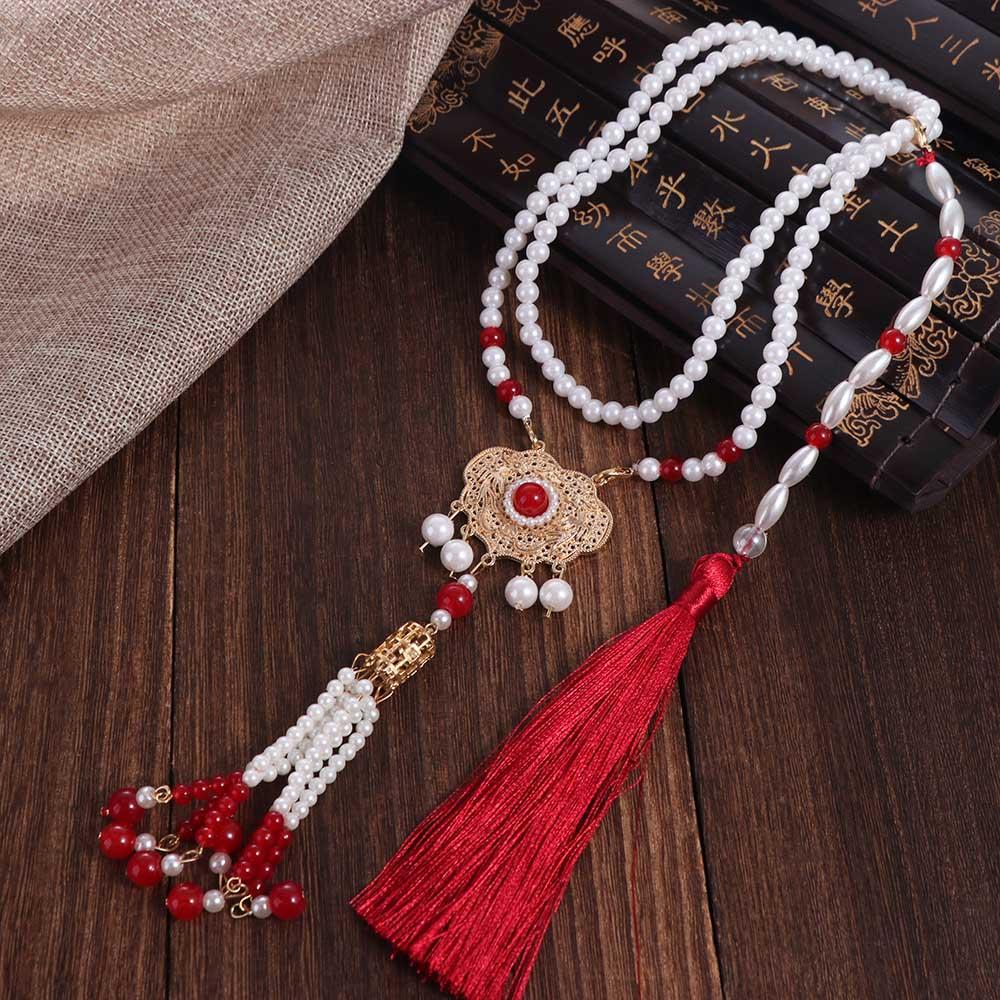 Imitation Pearl Hanfu Necklace Long Ethnic Pearl Pendant Sweet Chinese Pearl Necklace Collar