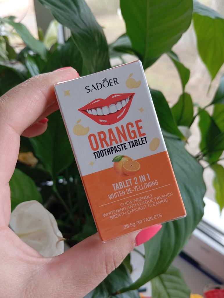 Зубная паста/ополаскиватель в таблетках 🫦 🍊 Компактный формат, удобно брать с собой. 🍊 В баночке 30 таблеток. 🍊 Экстракт апельсина придаёт пасте освежающий цитрусовый вкус. ❌❗❗☝ Это не конфета❗❗☝❌ (как я думала) ⏺⏺⏺ Как пользоваться в качестве зубной пасты: ✔️ Таблетку следует разжевать и распределить образовавшуюся пасту по зубам. ✔️ Используя зубную щетку, чистим зубы до 2-х минут. ✔️ Тщательно прополощите рот водой после чистки. ⏺⏺⏺ Как пользоваться в качестве ополаскивателя: ✔️ Таблетку разжевать и оставить во рту на 15 - 30 секунд. ✔️ Тщательно прополоскать рот водой. 🍊 Цена на момент заказа составила 169 рублей, сейчас гораздо дешевле. 🍊 У продавца несколько вкусов на выбор. 🍊 Товар прилетел в фирменной коробке, запаянной в слюду. 🍊 Срок годности актуальный. 🌟🌟🌟🌟🌟 Удачная покупка 🌟🌟🌟🌟🌟