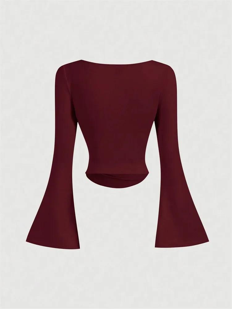 Кроп-топ Phumee с круглым вырезом, плиссировкой, рукавами-фонариками A2314