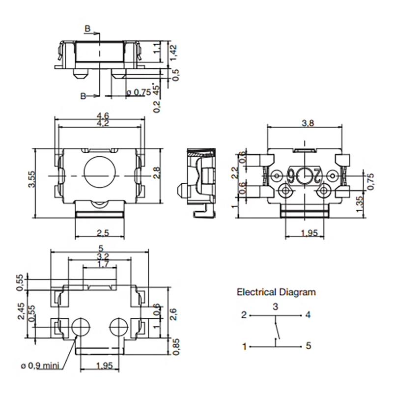 10 шт. Kms221Gplfs Плоская головка Маленькая черепаха Тактильная боковая кнопка Переключатель Патч 4 контакта Кнопка касания камеры мобильного телефона