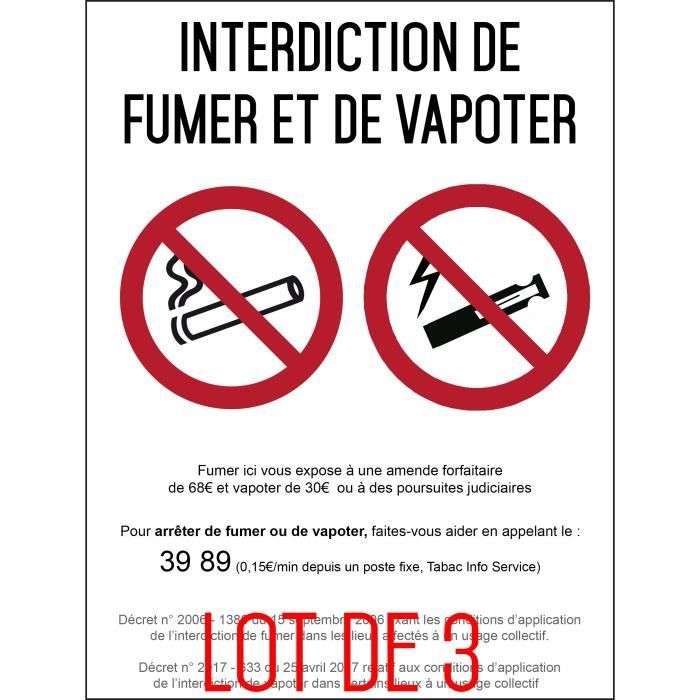 Panneau de signalétique - Interdiction de fumer - Autocollant vinyl waterproof - L.148 x H.210 mm - Lot de 3