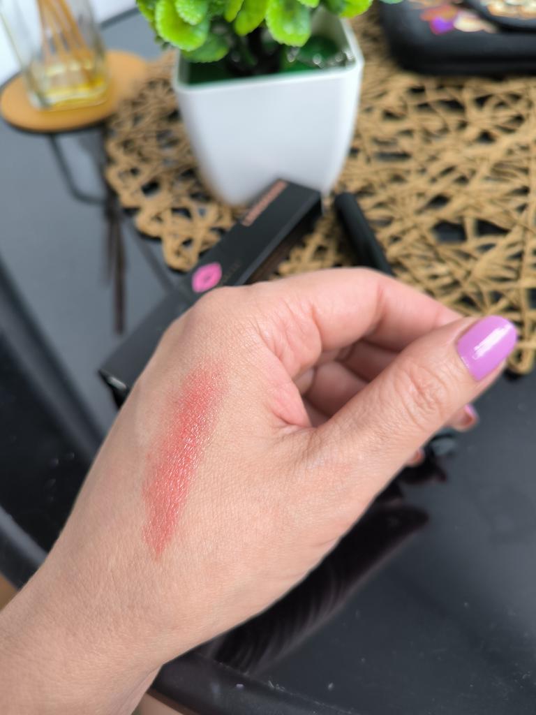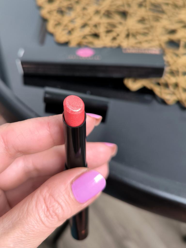 Перламутровая губная помада в интересном оформлении Прилетела в фирменной коробочке Аромат приятный, ненавязчивый На губы ложится идеально , не забивается в кисетные морщинки и самое главное не ощущается на губах Не жирная, не расплывается на губах и не оставляет отпечатков на посуде К покупке однозначно рекомендую Доставка месяц с живым треком в сборной посылке