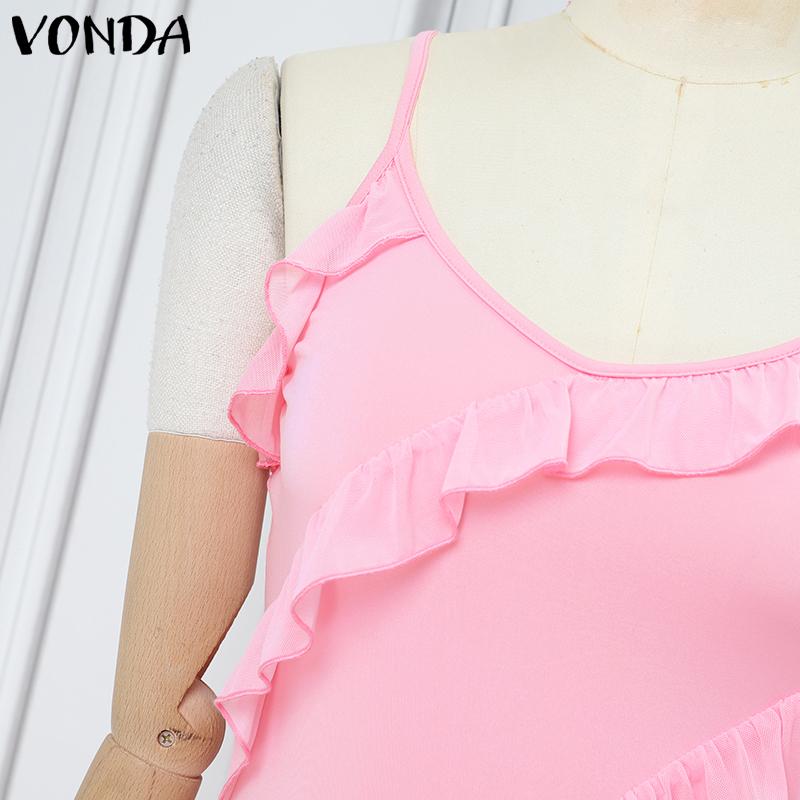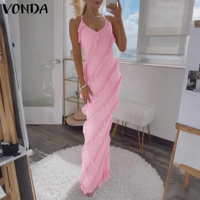 VONDA Женское платье-слинг без рукавов с оборками спереди, тонкое облегающее длинное вечернее платье
