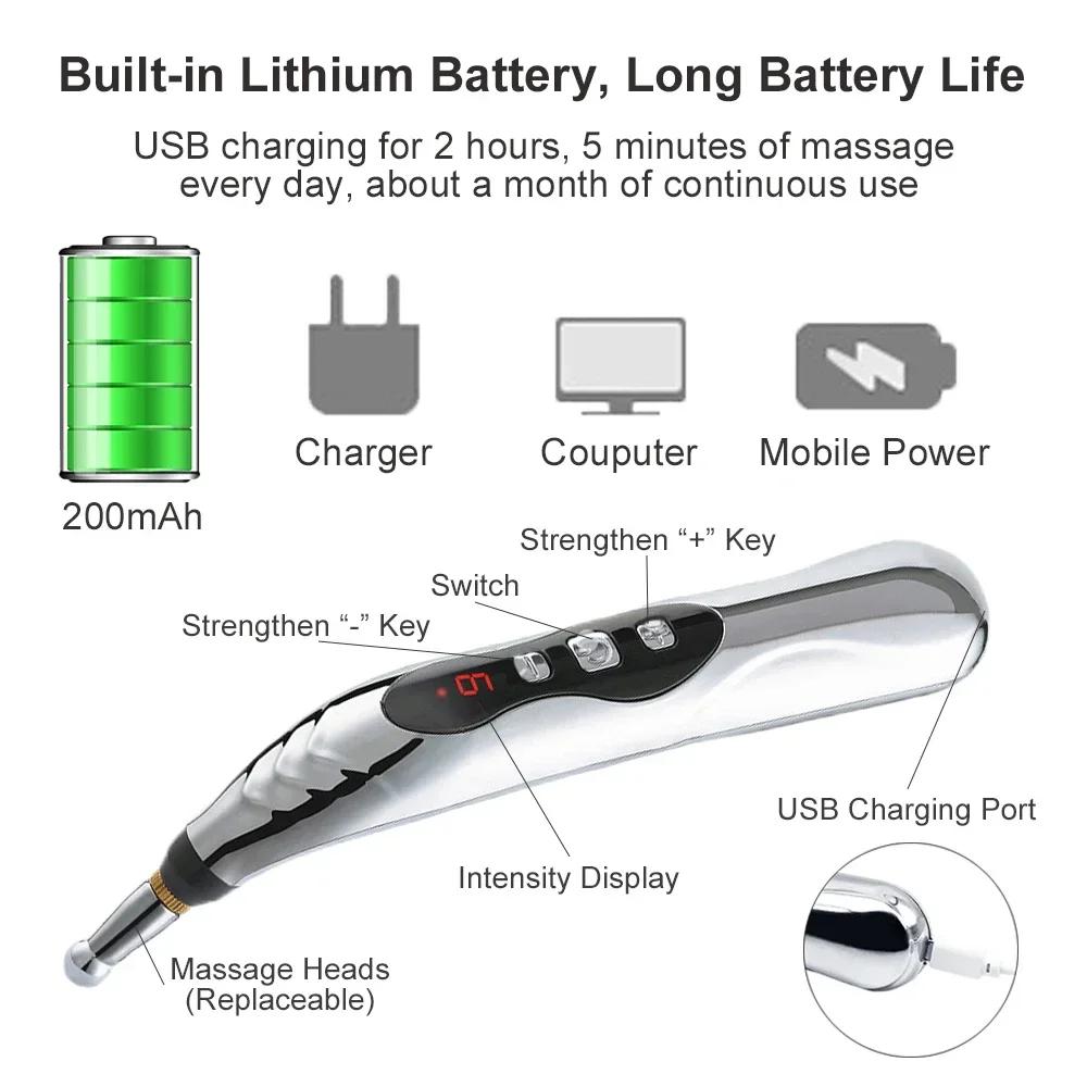 4. Легко использовать: Меридианная энергетическая ручка проста в использовании, а цифровой дисплей показывает интенсивность выходного электрического импульса.