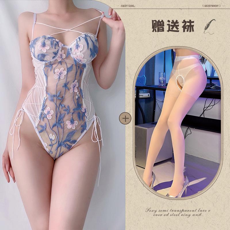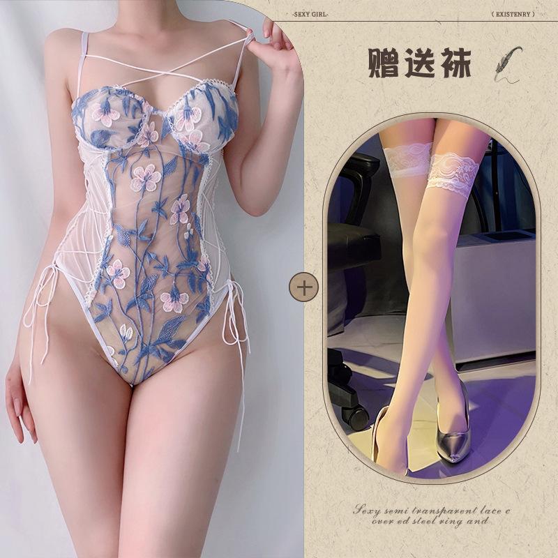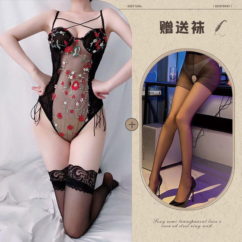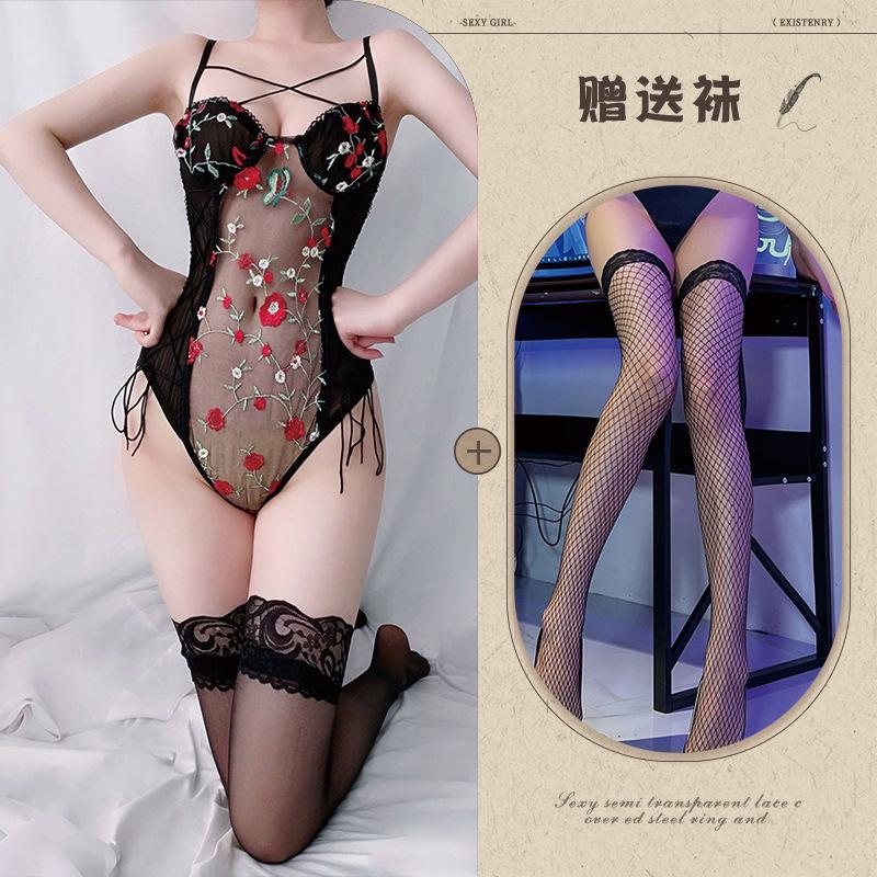 Sexy Ladies Mesh Embroidery Perspective onesie Sexy Pure Sexy Underwear Set