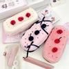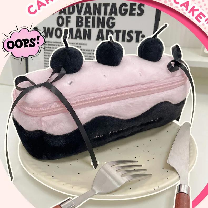 1 шт. Кавайный пенал для школьницы, милый десерт в виде вишневого торта, сумка-органайзер для канцелярских принадлежностей, портативный, большой вместимости, пушистый держатель для ручек