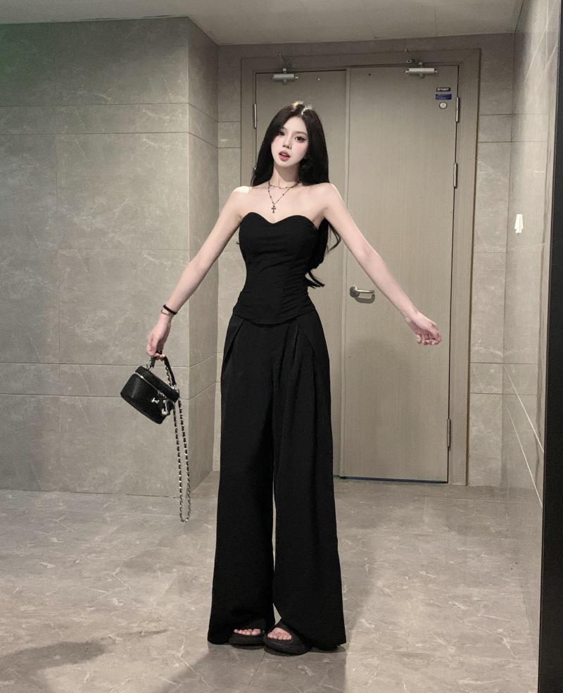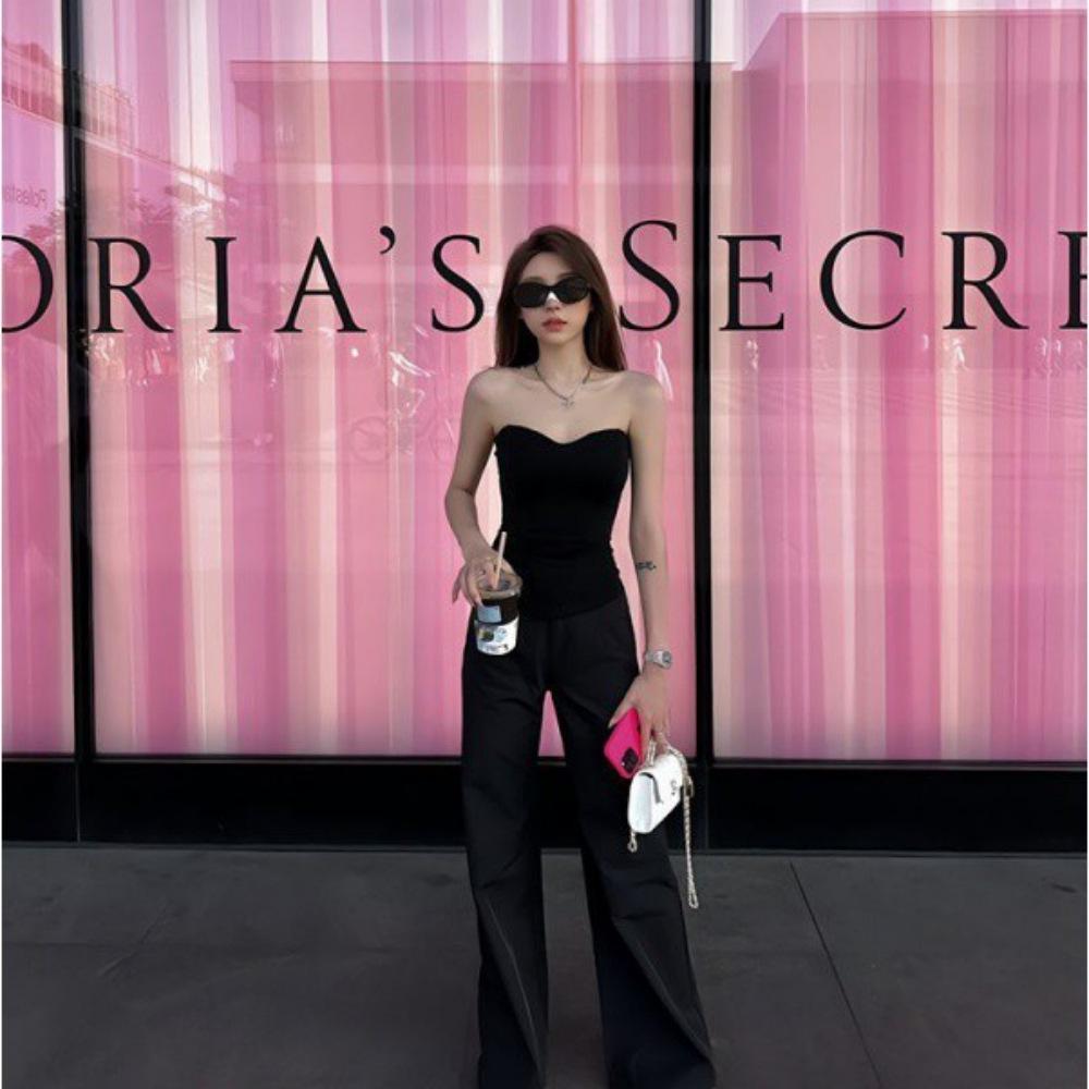 Элегантный черный топ-бандо «рыбья кость»: Женский летний утягивающий трехмерный жилет с запахом на груди