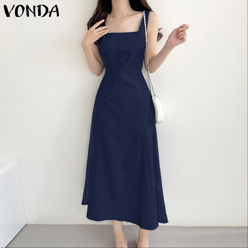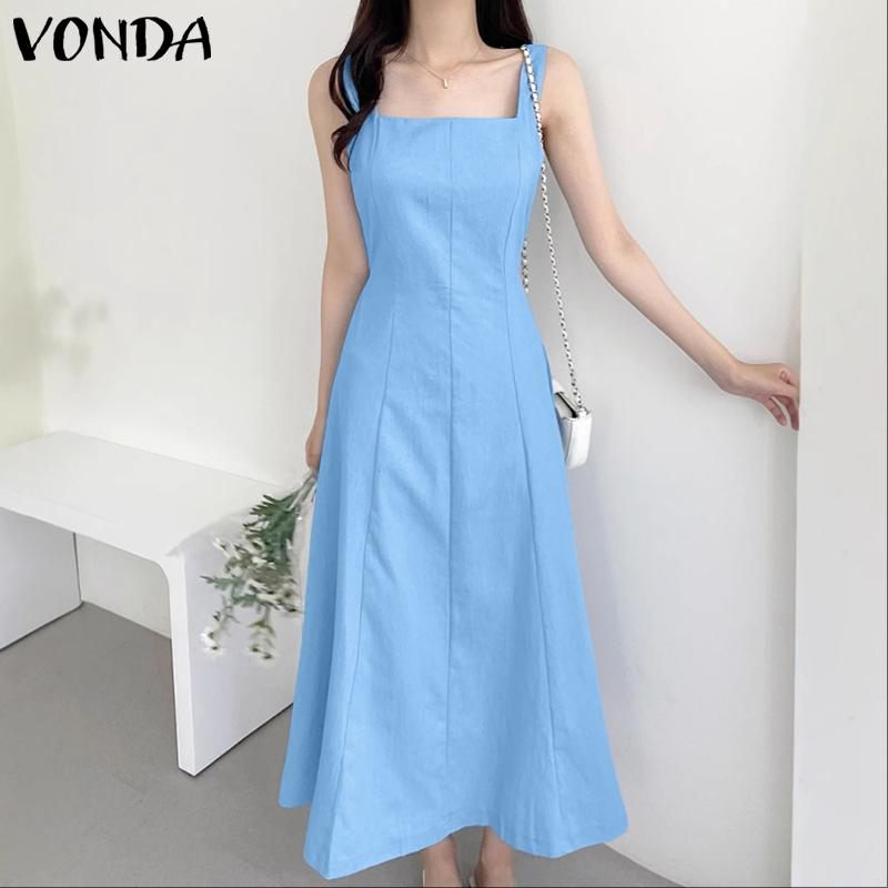VONDA Женское элегантное платье-майка без рукавов, повседневное, приталенное, длинное, плиссированное