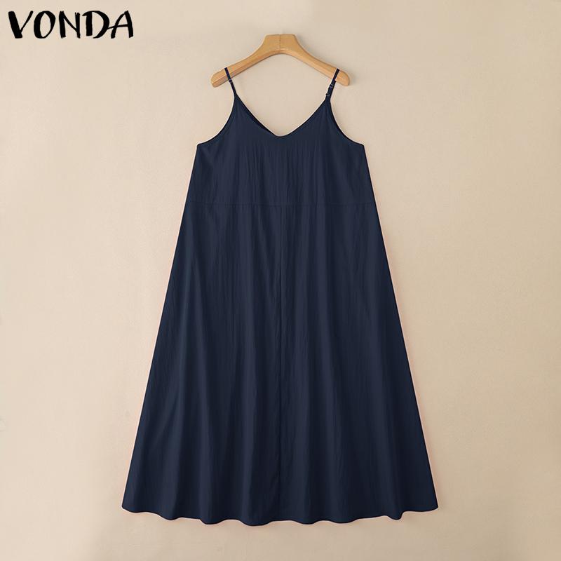 VONDA Женское повседневное платье на бретелях без рукавов с оборками, свободное, А-силуэта, длинное