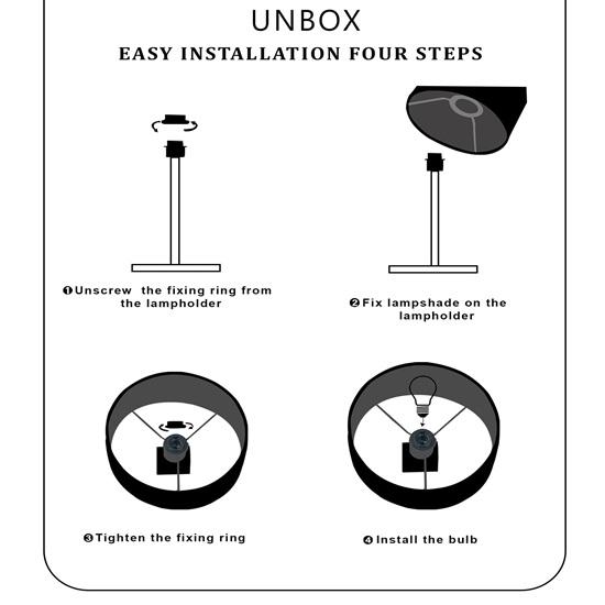 Просто прикрепите абажур к основанию, вкрутите лампочку по вашему выбору и включите в розетку!
