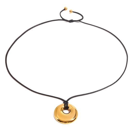 Богемное ожерелье из нержавеющей стали, кулон-кольцо, гипоаллергенное ожерелье, регулируемое ожерелье на черном шнурке, ювелирный подарок для него и для нее