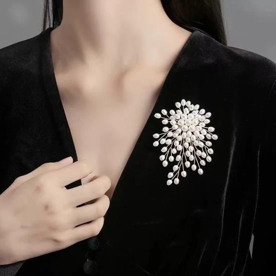 Подчеркните свой вкус в одежде этой изысканной брошью, идеально подходящей для стильных женщин всех возрастов.. Сплетенный вручную из искусственного жемчуга, он может похвастаться уникальным и изысканным дизайном, который дополнит любую ювелирную коллекцию..