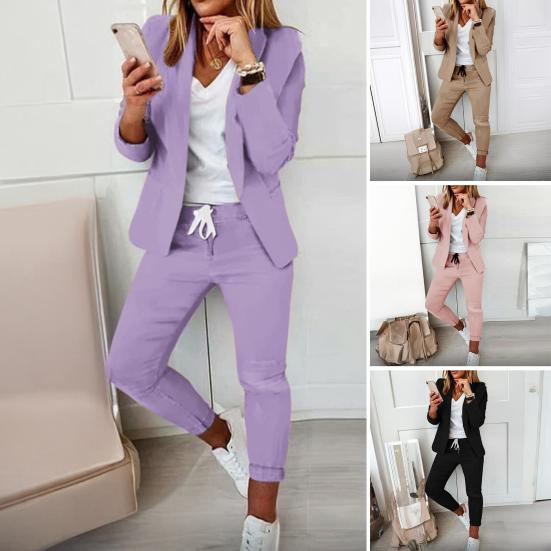 Этот стильный костюмный комплект изготовлен из дышащей и легкой полиэстеровой ткани, обеспечивающей комфорт и стиль весной, летом и осенью.. Повседневный костюм-двойка отличается простым однотонным дизайном, который подходит для разных фигур и возрастов.. Благодаря свободному крою этот женский костюм не только подчеркивает ваш силуэт, но и обеспечивает оптимальный комфорт..