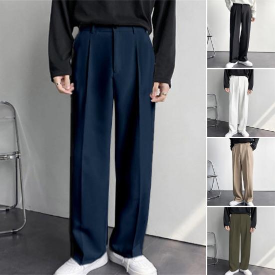Мужские брюки от костюма с высокой талией, на пуговице и молнии, прямые широкие длинные брюки с карманами, однотонные повседневные брюки для носки каждый день