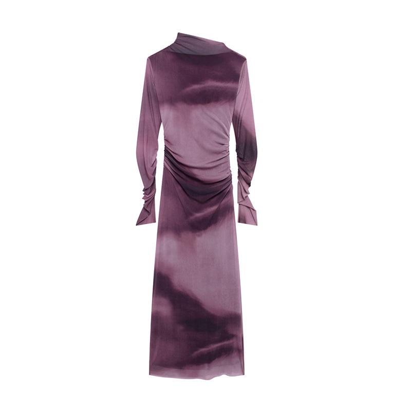 Европейско-американский тренд 2024: Женское облегающее платье из плиссированной шелковой сетки со стойкой и длинными рукавами, осенний стиль — купить товар онлайн с бесплатной доставкой по всему миру!