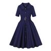 Европейское и американское женское ретро-платье с рукавом средней длины, отложным воротником, однотонное, с карманами