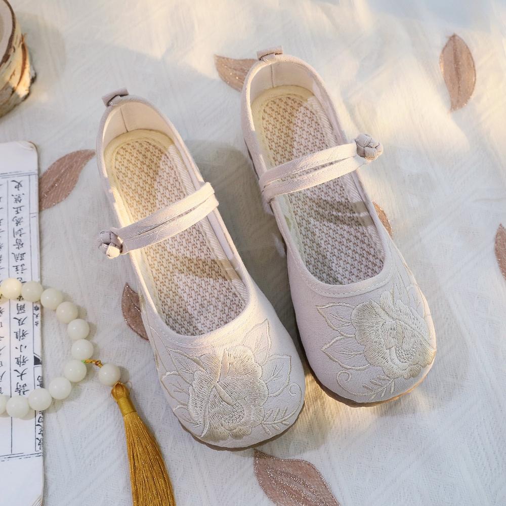 Винтажные китайские туфли из ткани ручной работы с вышивкой - Женские балетки для ханьфу, антикварные дышащие нескользящие туфли для ходьбы — купить товар онлайн с бесплатной доставкой по всему миру!