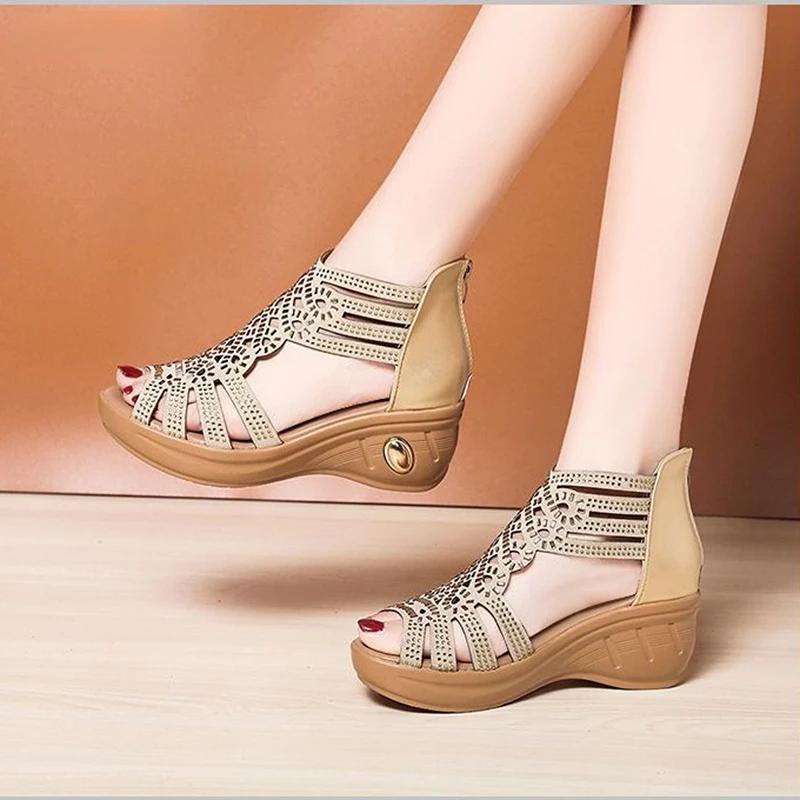 2025 Новая Мода Клиновые Сандалии Женские Летние Туфли Элегантные Женские Римские Сандалии С Вырезами Женские Сандалии Черные Клиновые Каблуки