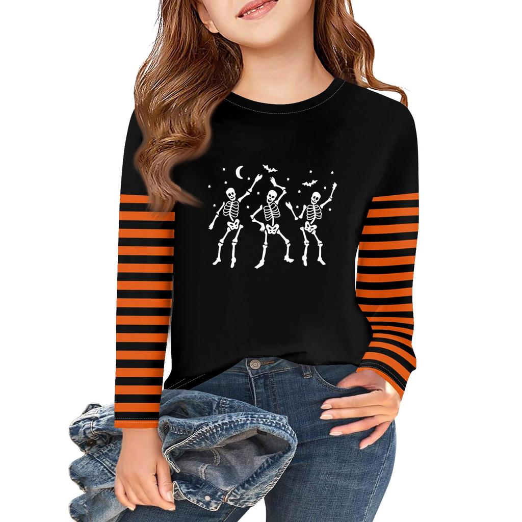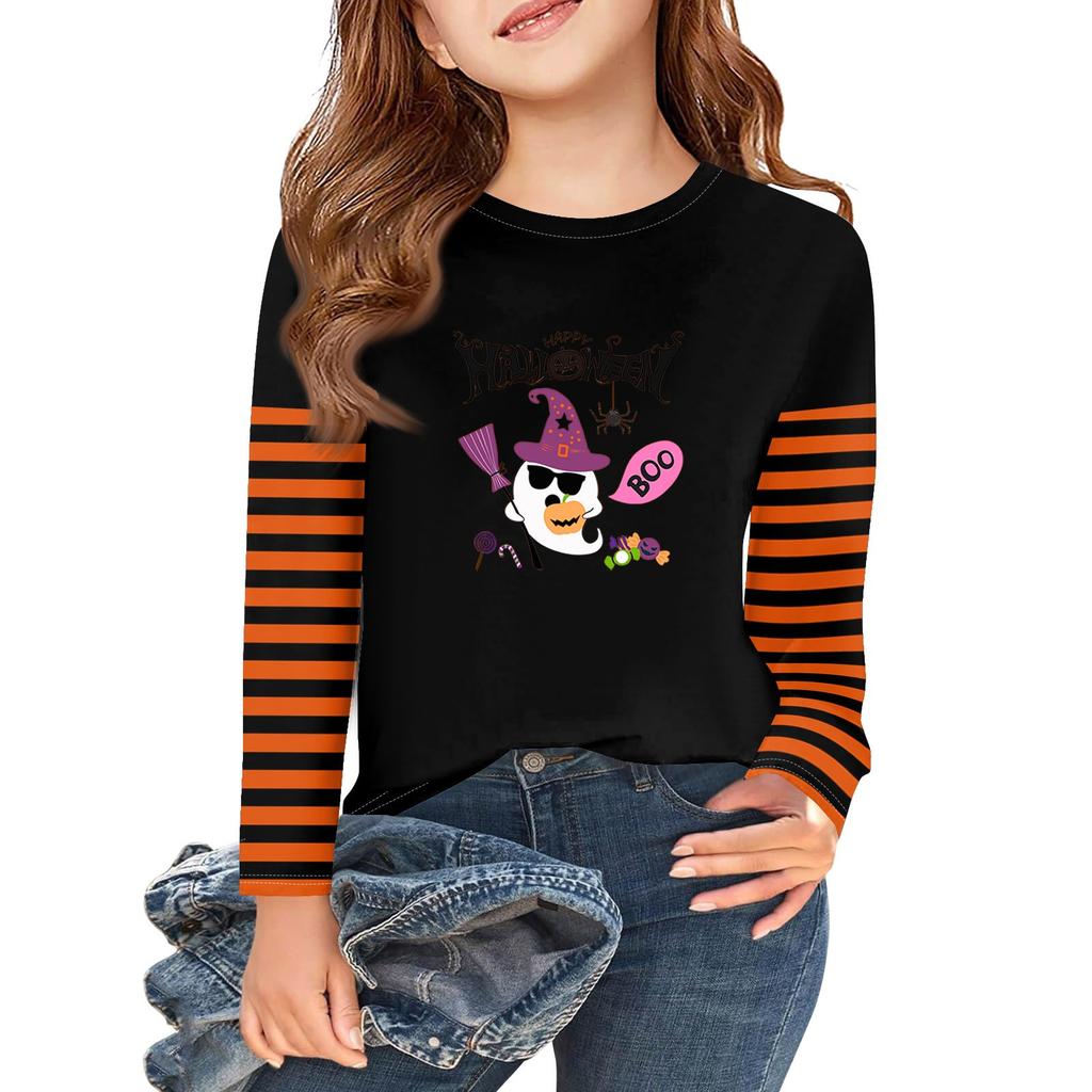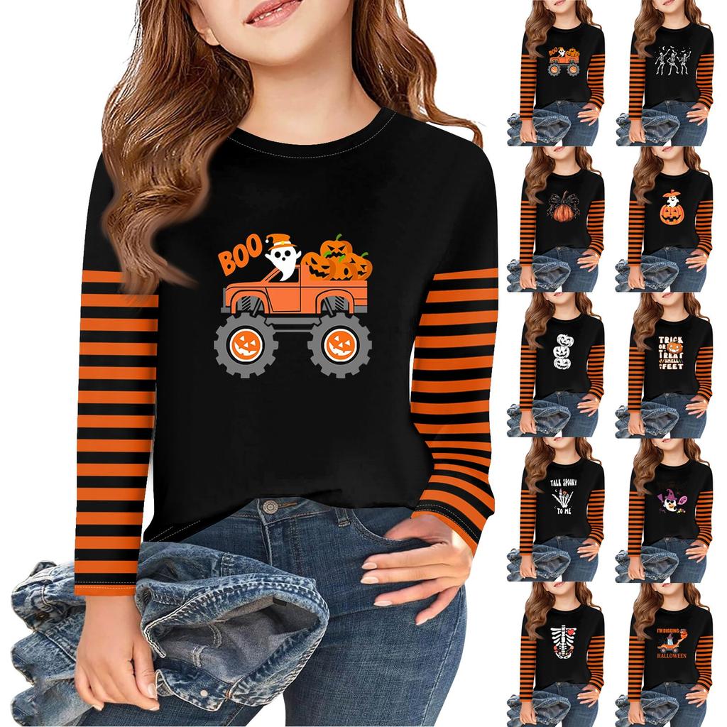 Футболки с длинным рукавом для девочек на Хэллоуин, детские осенние топы с круглым вырезом, базовые футболки 2-11 лет