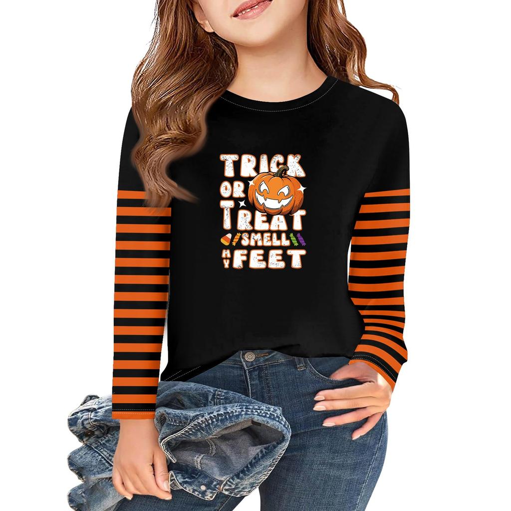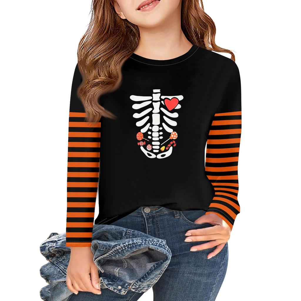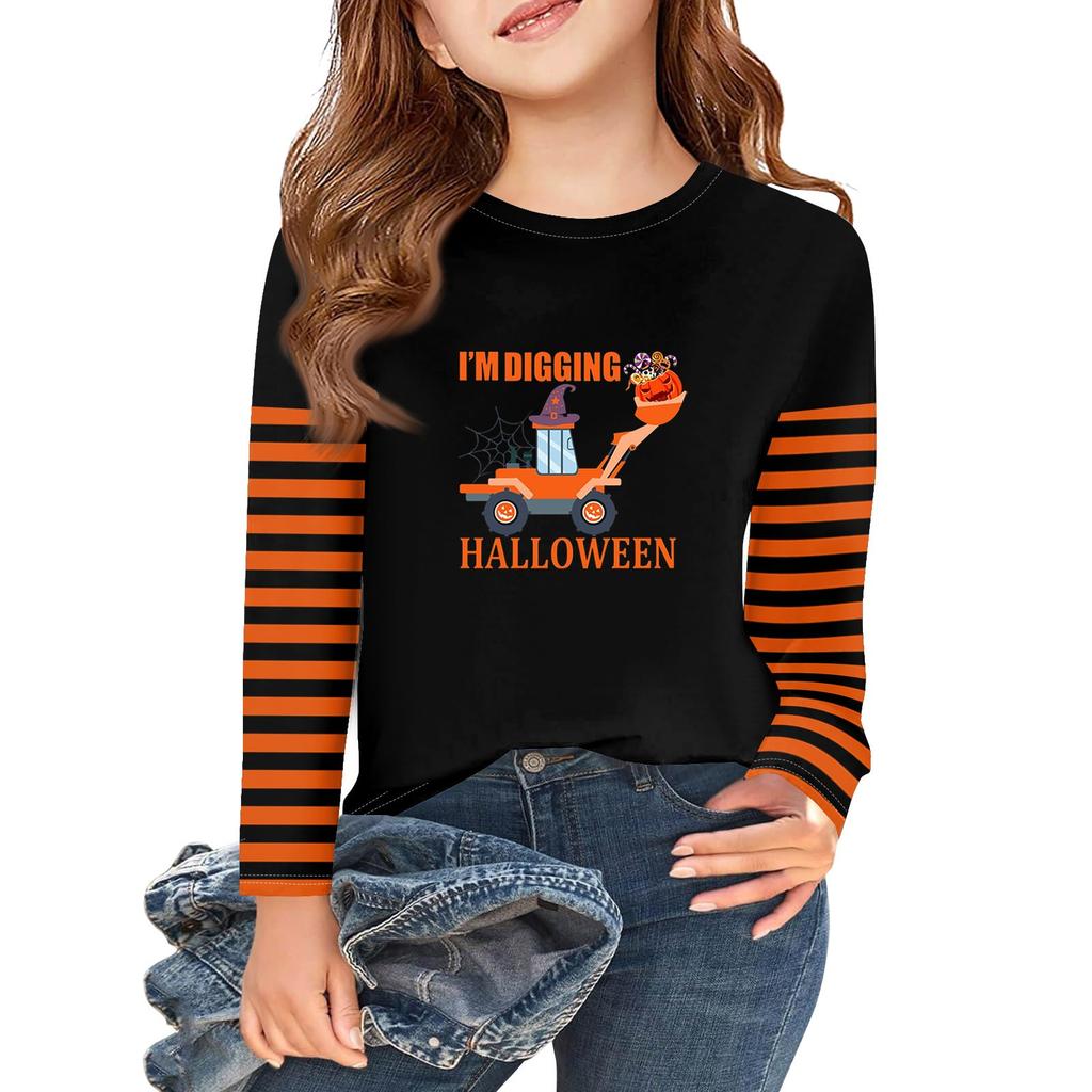 Футболки с длинным рукавом для девочек на Хэллоуин, детские осенние топы с круглым вырезом, базовые футболки 2-11 лет