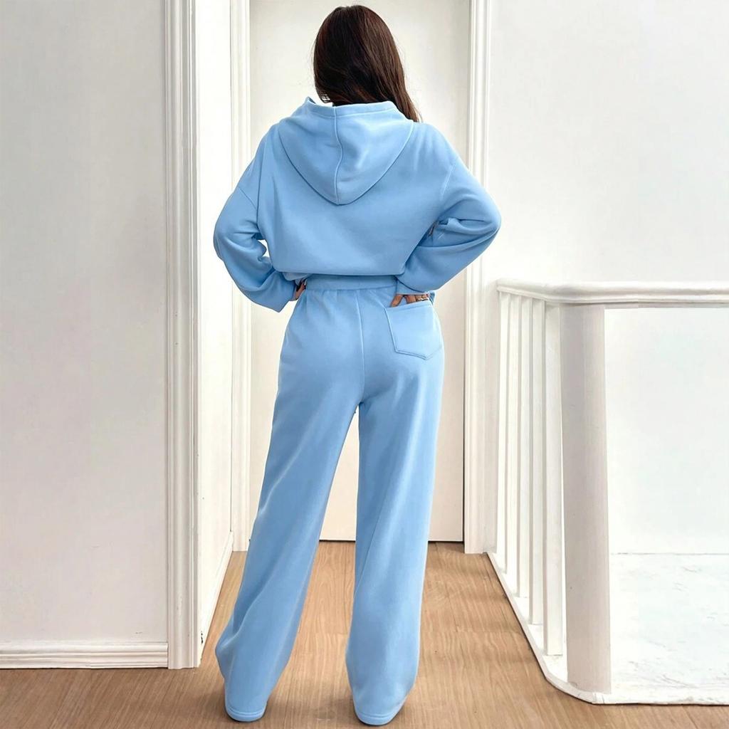 Женский повседневный теплый худи и повседневные брюки Зимний спортивный костюм