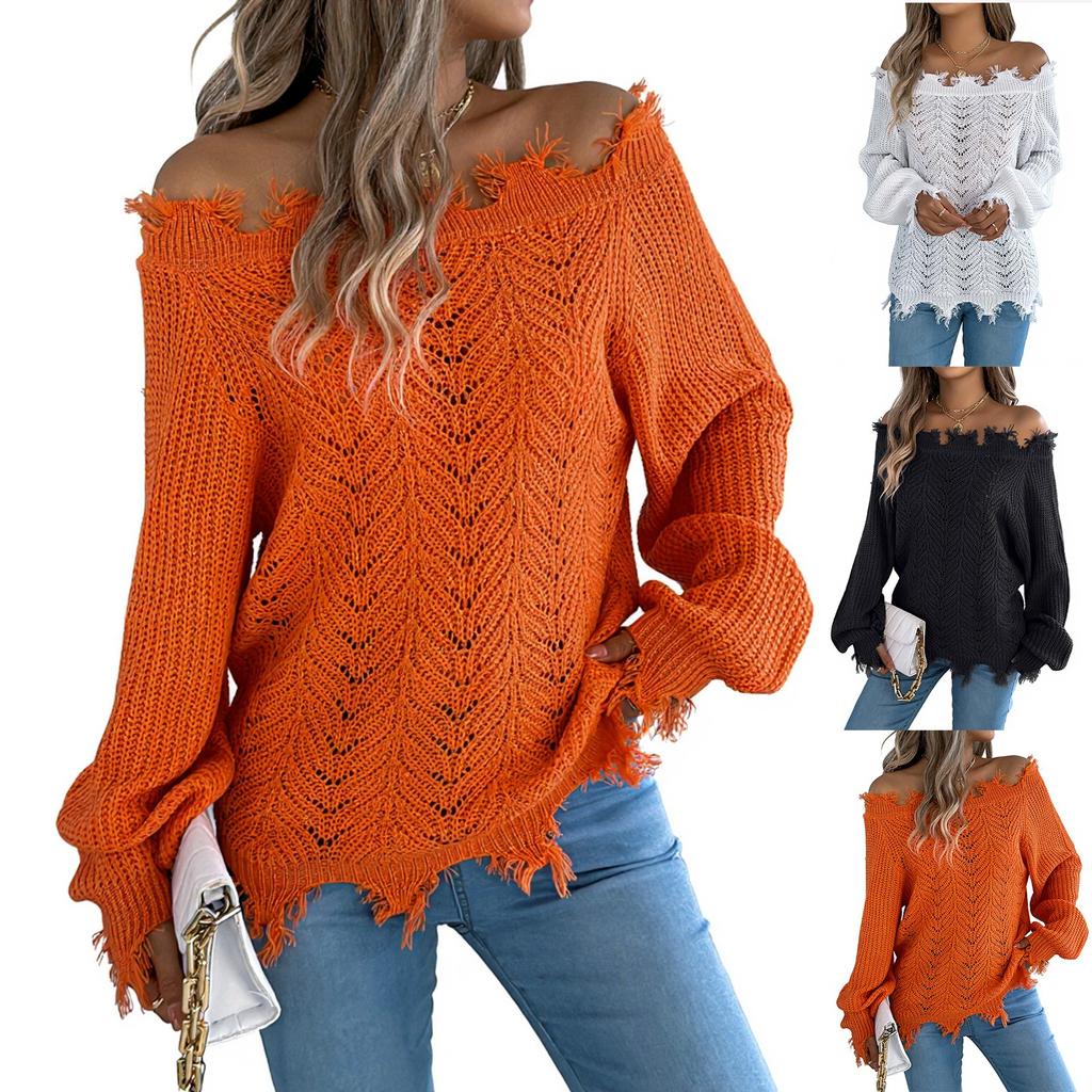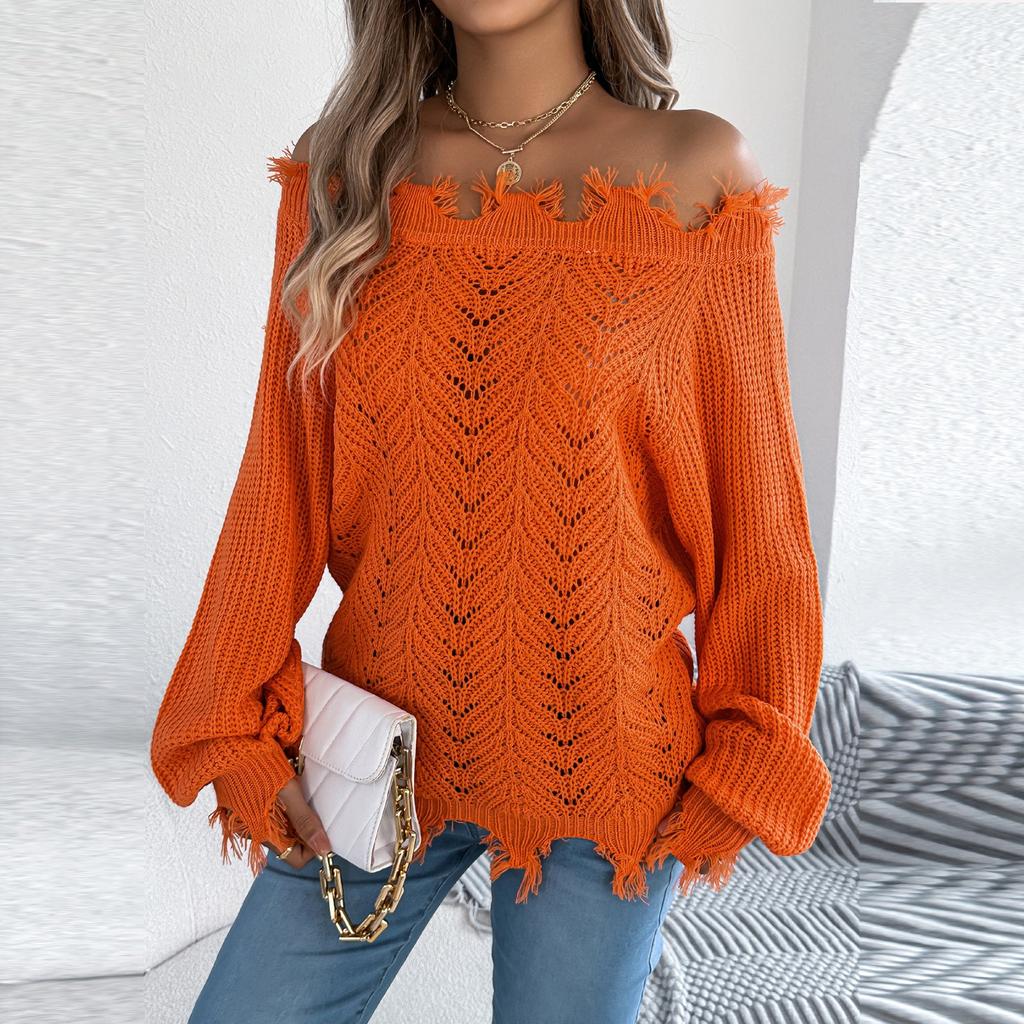 Женский модный однотонный пуловер с вырезами на плечах и длинными рукавами