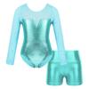 Девочки Металлический Купальник Длинный Рукав Дизайн Пэчворк из Страз Шорты с Высокой Посадкой Комплект для Выступлений
