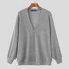 INCERUN Мужские трикотажные пуловеры с V-образным вырезом и длинным рукавом