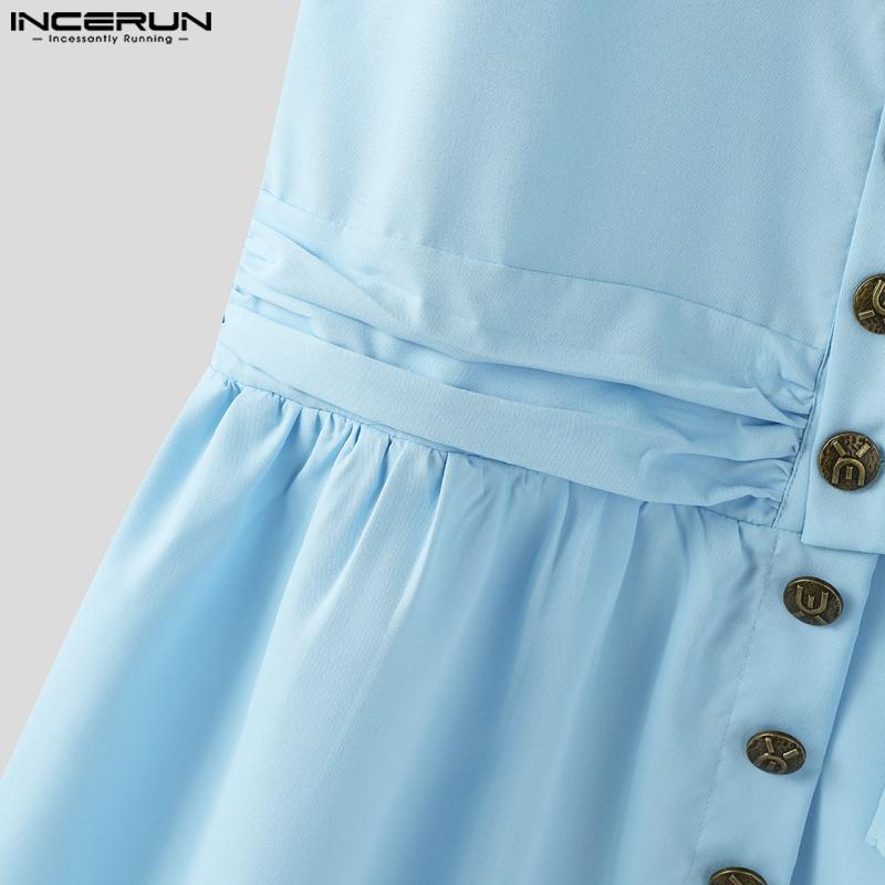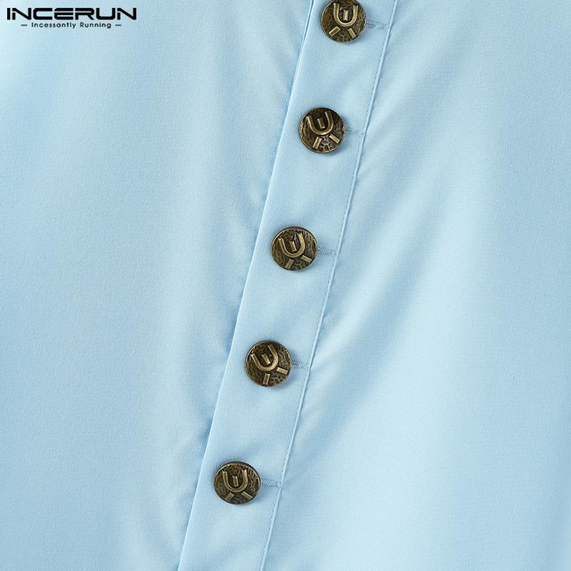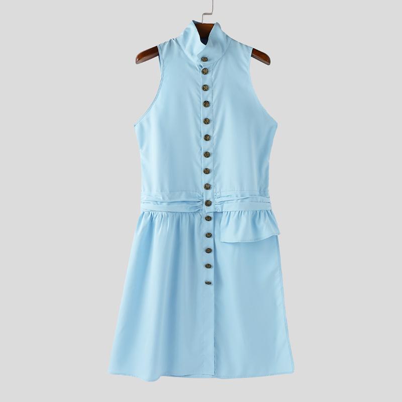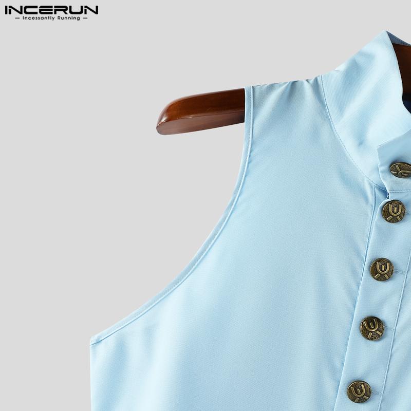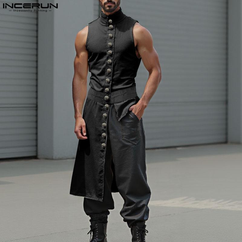 INCERUN Мужские топы без рукавов со стойкой, на пуговицах, с боковыми разрезами и неровным низом