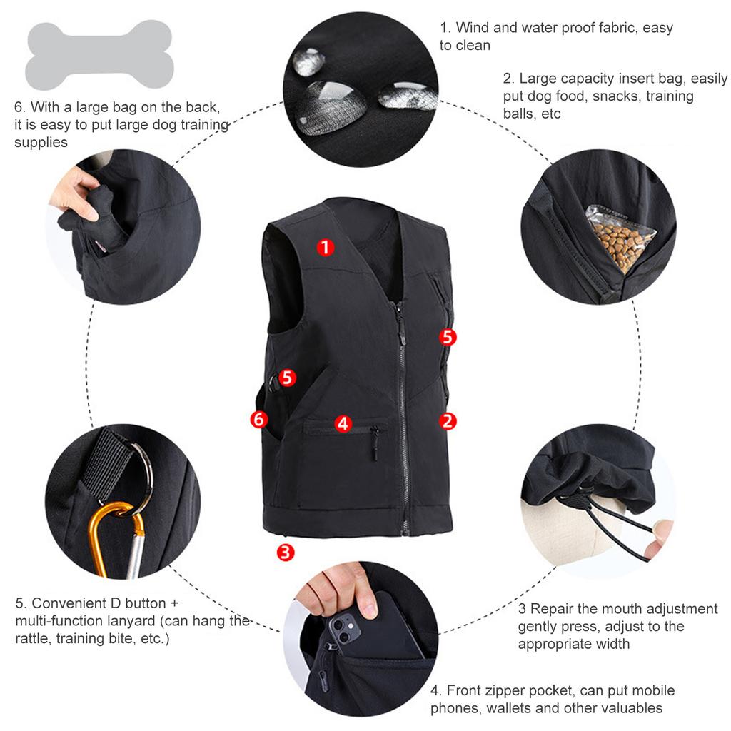 Жилет для дрессировки собак с большими карманами, дышащая одежда для тренера питомцев, одежда для дрессировщика собак, аксессуары для дрессировки собак