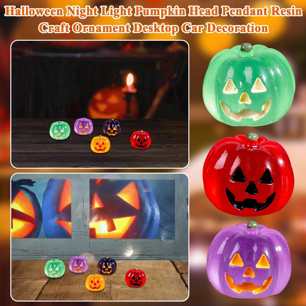 Halloween Night Light Pumpkin Head Pendant Resin Craft Ornament Desktop Car Decoration