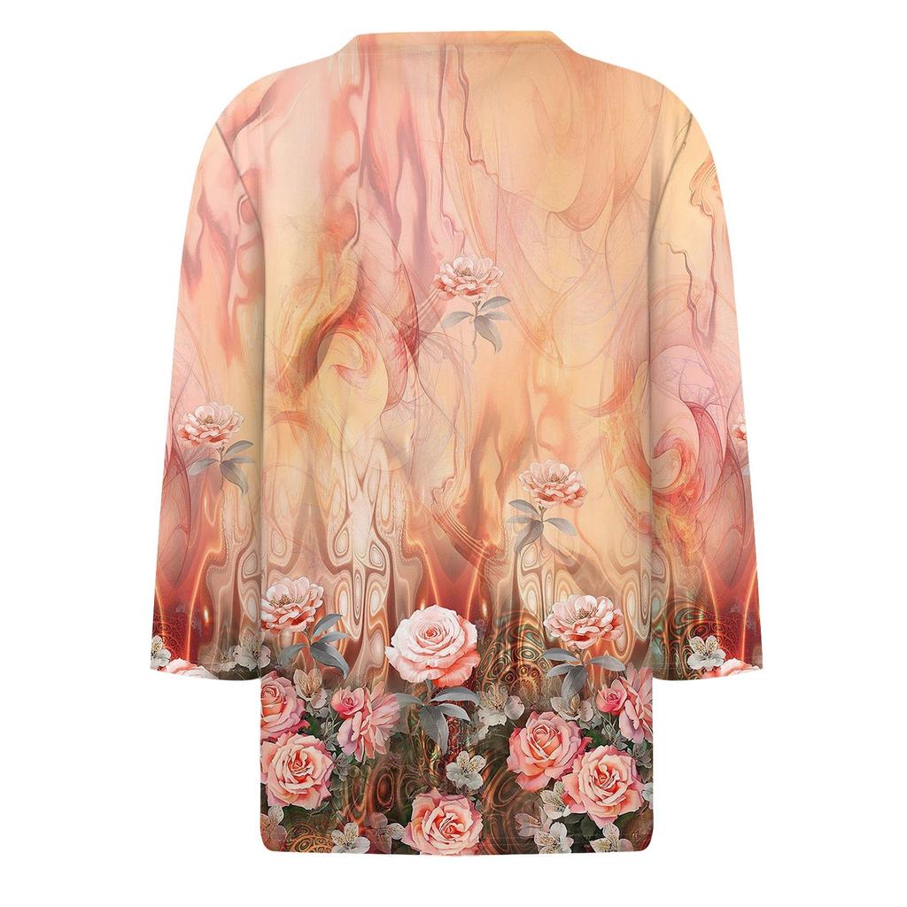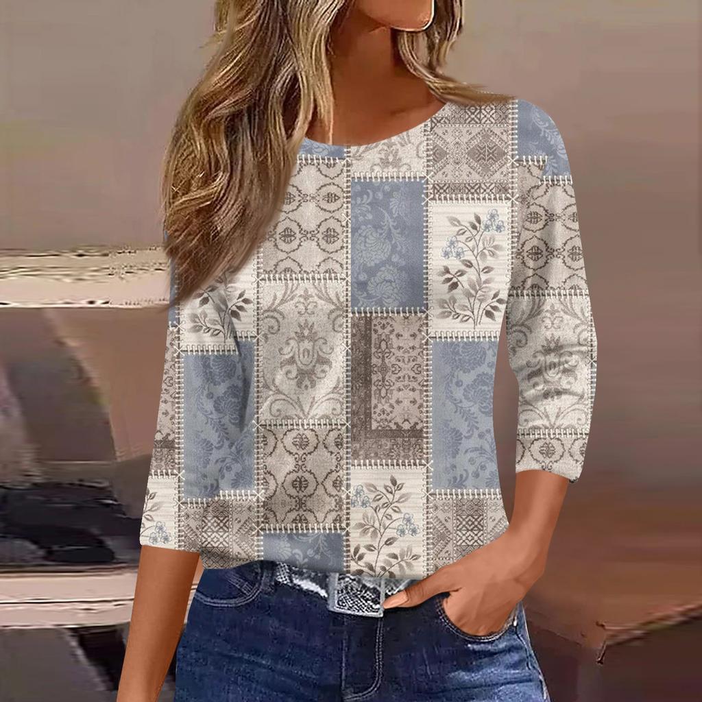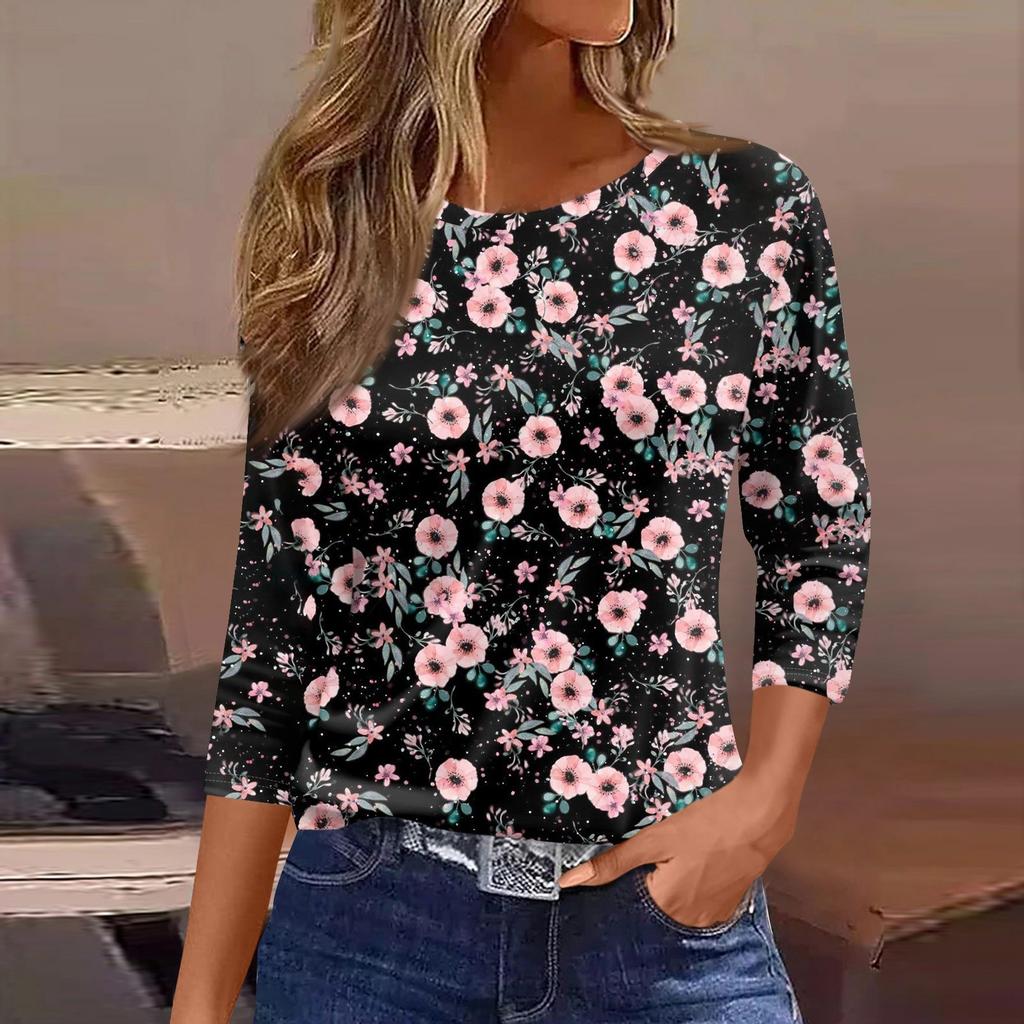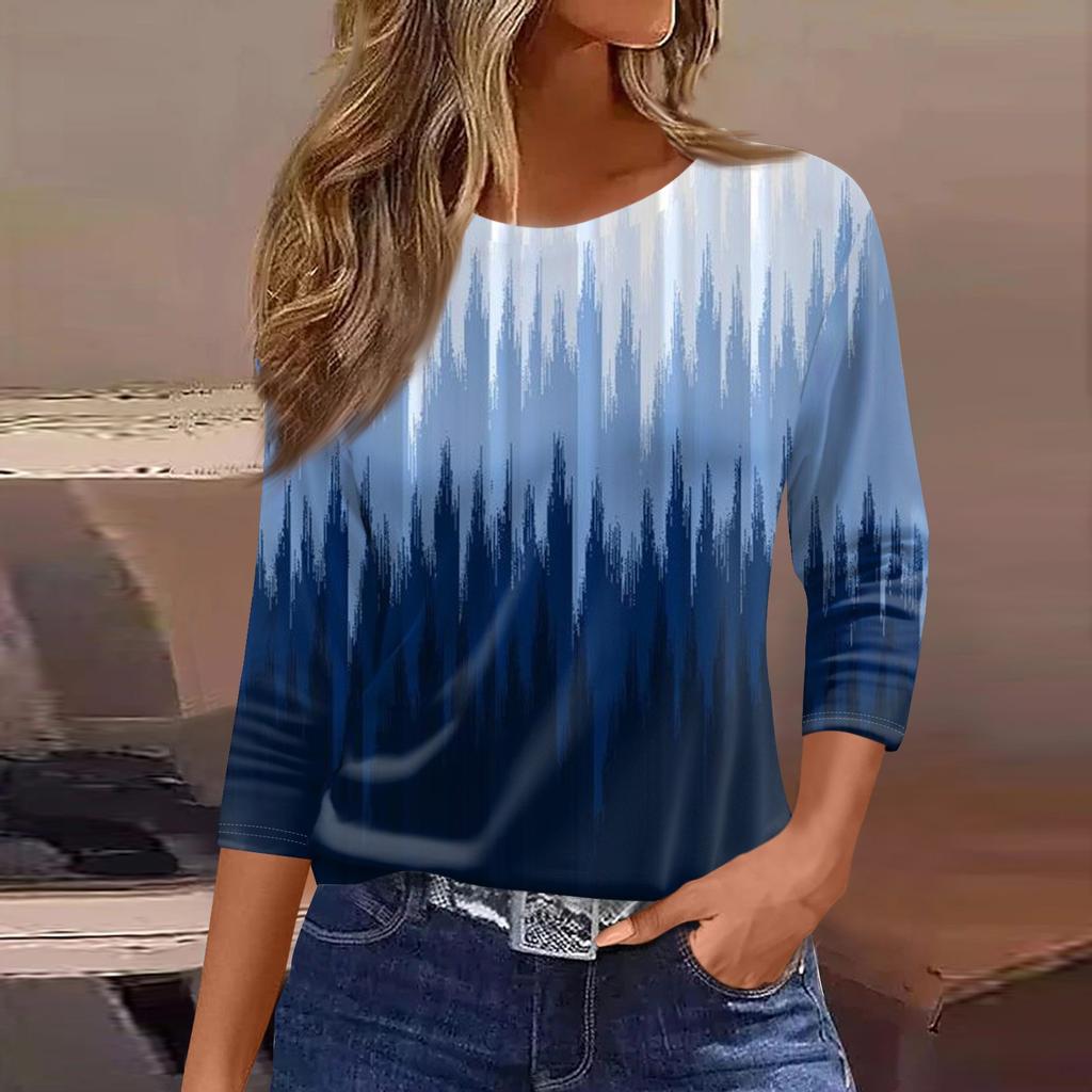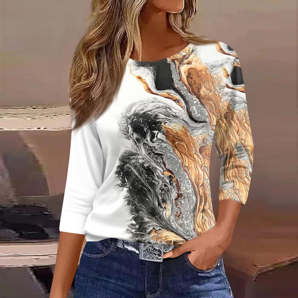 Женская модная повседневная свободная футболка с круглым вырезом и рукавами 3/4 с принтом, женский топ