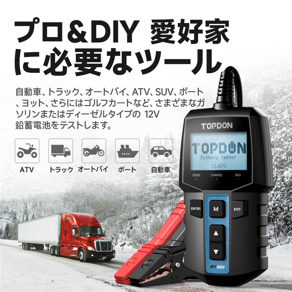 [Широкий спектр применений] Тестер BT100 не требует предварительной зарядки; просто подключите красный зажим к положительной клемме, а черный зажим к отрицательной клемме, чтобы начать диагностику. Он может измерять различные устройства, включая автомобили, мотоциклы, грузовики, дома на колесах, квадроциклы, внедорожники, лодки, яхты, газонокосилки и гольф-кары.. Это полезно для ремонтных мастерских, техников, индивидуальных пользователей и любителей для проверки состояния их транспортных средств.
