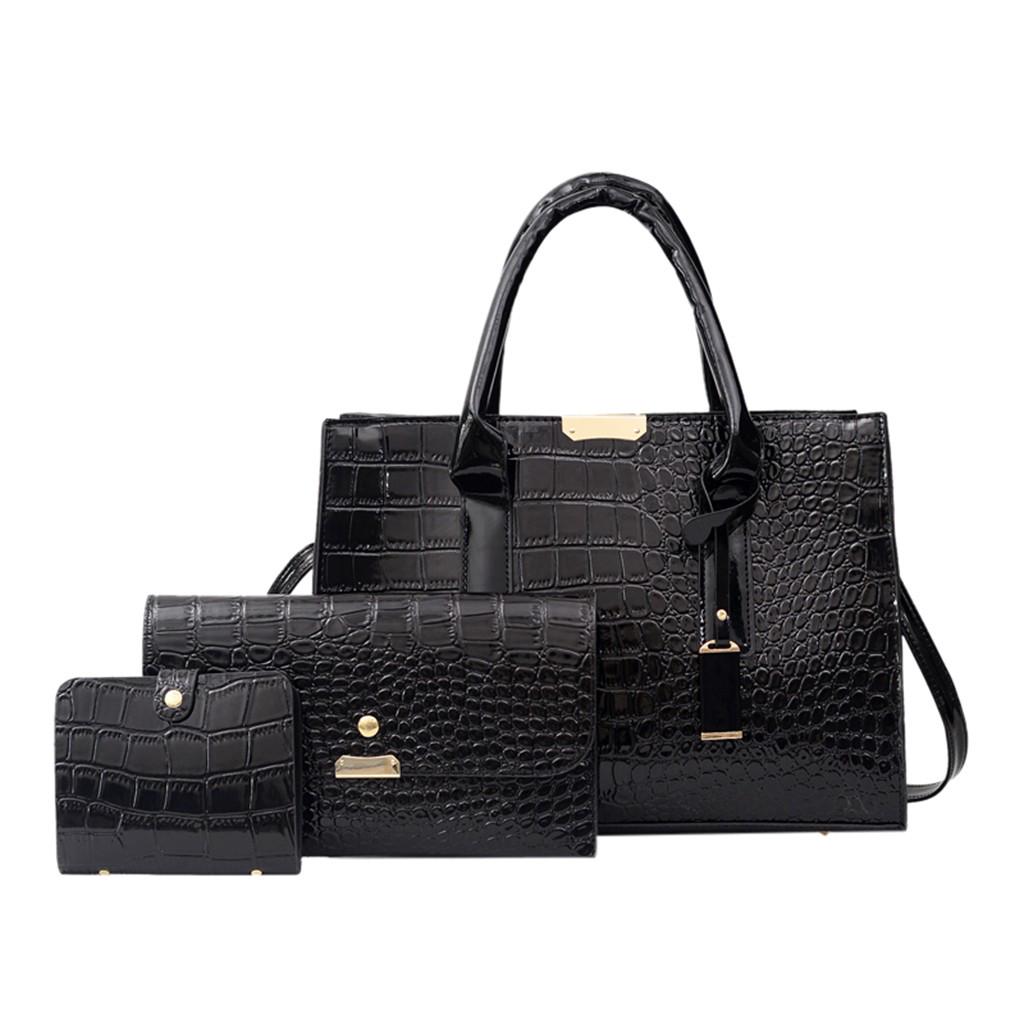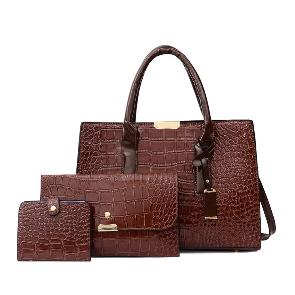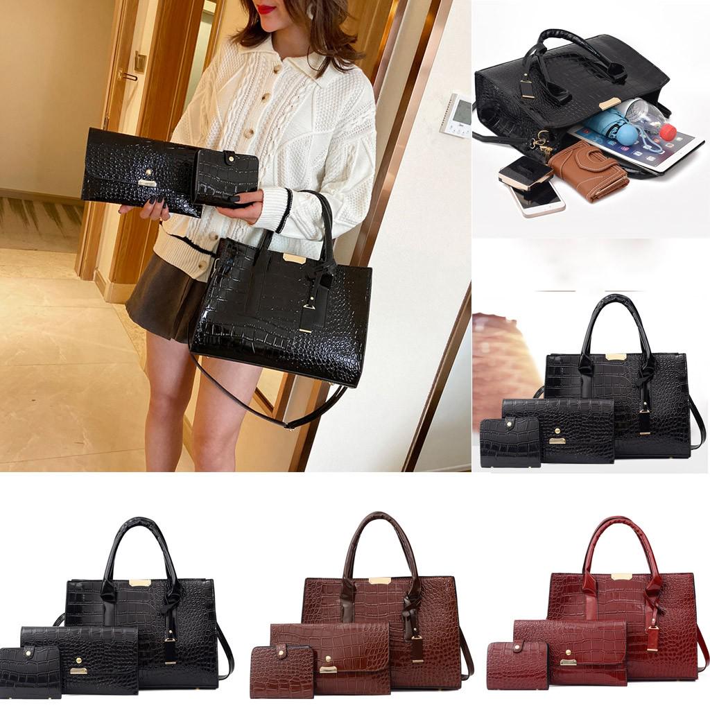 Мода Женский Открытый Сплошной Цвет Три Части Кожаная Сумка Клатч Кошелек