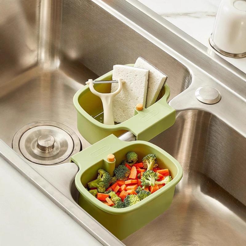 Kitchen Sink Filter Mesh Frame Vegetable Washing Draining Hanging Basket Sink Dish StorageMulti-functional Draining Basket